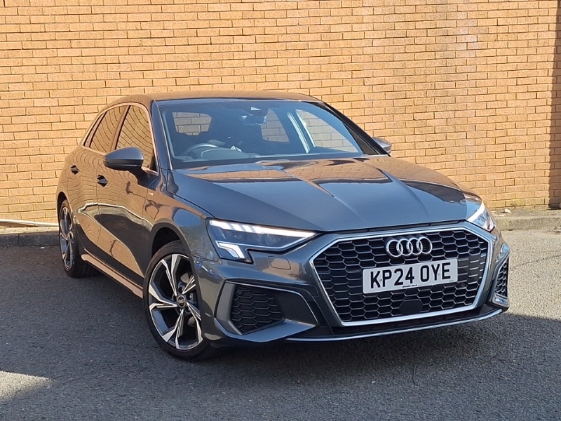 GlasgowAndroid Auto, Apple CarPlay, Cruise control, LED daytime running lights, LED Headlights, Rear parking sensor, Cruise control, Collision avoidance assistant, Camera based traffic sign recognition, Bluetooth interface, Automatic start/stop system with recuperation, Audi Virtual Cockpit 10.25" digital and colour instrument cluster, Audi smartphone interface, Sports suspension, DAB Digital radio, 6 passive loudspeakers, 2xUSBC connection with data and charging functions, Electrically adjustable/heated/folding/auto dimming door mirrors with integrated LED indications + kerb view function for passenger side, Body colour exterior mirrors, Auto dimming frameless rear view mirror, Aluminium window trim, Acoustic glass windscreen, 3rd brake light, Interior lighting glove compartment light and right hand side, Height and reach adjustable steering wheel, Front/rear floor mats, Front and rear headrests, Front and rear centre armrest in artificial leather, Dual zone electronic climate control, Black cloth headlining, 60/40 split folding rear seat bench, 4 way electrically adjustable lumbar support for driver and front passenger, S line styling pack A3 Sportback, LED interior lighting pack A3 Sportback, Aluminium interior elements pack A3 Sportback, Front side airbags with head airbags and interaction airbag, First aid kit with warning triangle and 2 safety vests, Electronic Stabilisation Control (ESC) including ABS, ASR and EDL, Driver and front passenger airbag with passenger airbag deactivation, 3x3 point rear seat belts