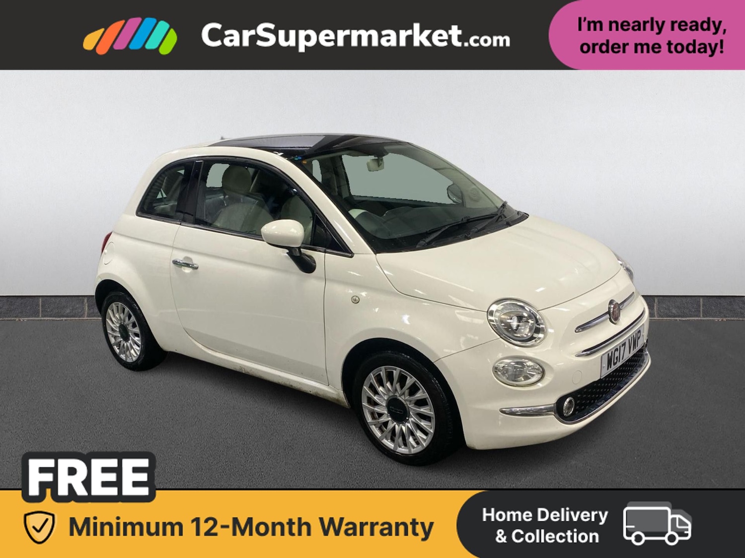 Insurance Group 8, Finished in white, this Fiat 500 Lounge combines iconic Italian styling with a great specification. The vehicle includes cruise control and also benefits from optional extras including Bossa Nova White paint, cloth upholstery in black, light grey and ivory with ivory ambience, and a 7inch HD touchscreen radio with Bluetooth, USB, AUXin and DAB. These factory options total £100.