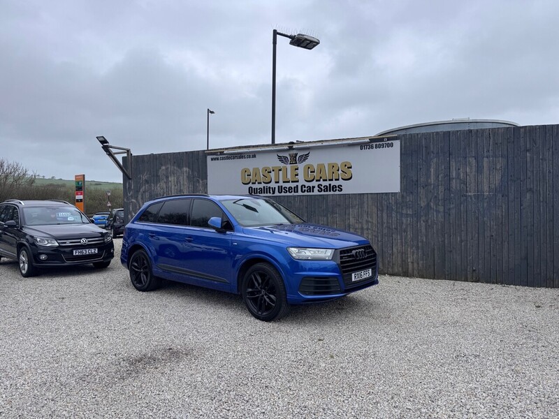 LudgvanWe are pleased to offer for sale this Audi Q7 S Line Quattro2016, 3.0TDI V6, 5 Door SUV, Automatic 7 Seater Blue with Black 20in Alloy Wheels 5Parallel Spoke Design, Aluminium Roof Rails, Acoustic and Visual Parking System Front and Rear, All Weather LED Headlights, Headlights HighBeam Assist, LED Rear Lights, Headlights Adaptive, Headlights Automatic, LED Daytime Running Lights, Dynamic Suspension, Hill Descent Control, Audi Hill Hold Assist and Privacy Glass77,180 mile with Service History, will be Sold with Brand New 12 Months MOT and is £265 A Year Road TaxULEZ Compliant (at time of writing)The interior is Full Black Leather in Good condition throughout offering features: AMI Audi Music Interface, Audi Sound System, AUXIN Socket, DAB Digital Radio, Bluetooth Audio Streaming, Display Screen Colour TFT 7in High Resolution, MMI Navigation Plus including MMI Touch, Mobile Telephone Preparation Bluetooth Interface, Door Mirrors HeatedElectrically AdjustableFolding, Air Conditioning Deluxe Automatic at the Rear, Heated Front Seats, ISOFIX Child Seat Preparation for Rear, Seats with Top Tether, Automatic Wipers with Rain Sensor?, Electric Windows Front and Rear and Multi Functional Steering Wheel Ideal Family Vehicle which Looks and Drives Superb!PX Vehicles ConsideredAccept all Major Credit and Debit Cards12 Months Warranty Included Extended Warranty can be Purchased Plese ask for Further Information**Finance Available (subject to terms and conditions)**Please call Castle Cars 01736 809700 or visit www.castlecarsales.co.uk. 2 x SDXC Card Readers, AMI Audi Music Interface, Amplifier 6 Channel, Audi Connect 3 Month Trial, Audi Sound System, AUXIN Socket, Bluetooth Audio Streaming, Colour Touchscreen Display 8.3in, DAB Digital Radio, Display Screen Colour TFT 7in High Resolution, DVD Player, Flash Memory for Music 10GB, MMI Navigation Plus including MMI Touch, MMI Radio Plus, MMI Search, Mobile Telephone Preparation Bluetooth Interface, Speakers x10, Subwoofer, USB Connection x2, Acoustic and Visual Parking System Front, Acoustic and Visual Parking System Rear, Audi Drive Select, Colour Drivers Information System DIS, Cruise Control with Speed Limiter, MMI Touch, Outside Temperature Display, Tyre Pressure Loss Indicator, Voice Control Navigation, 20in Alloy Wheels 5Parallel Spoke Design, Aluminium Roof Rails, Anti Theft Locking Wheel Bolts, Body Coloured Bumpers, Body Coloured Door Mirrors, Door Handles Body Coloured, Door Mirrors HeatedElectrically AdjustableFolding, Door Mirrors Kerb View Function, Dynamic Rear Indicators, Electric Windows Front and Rear, Lighting Tailgate, Platinum Grey Front Spoiler Lip and Diffuser Insert with Honeycomb Grid in Black, Privacy Glass, Rear Diffuser S Line Design, S Line Badges on Front Wings, S Line Body Styling, S Line BumpersSide Ventilation GrillesSide Skirts and Roof Spoiler, S Line Roof Spoiler, Tyre Repair Kit, Window Surrounds Aluminium, All Weather LED Headlights, Headlights Adaptive, Headlights Automatic, Headlights HighBeam Assist, Headlights Washers, LED Daytime Running Lights, LED Rear Lights, 3D Map Display of Places of Interest and City Models, Air Conditioning Deluxe Automatic at the Rear, AutoDimming RearView Mirror, Automatic Wipers with Rain Sensor, Cloth Headlining in Black, Comfort Front Centre Armrest, Contour Door and Dashboard Lighting, Cup Holders in Rear Armrest x2, Dashboard Upper and Lower Black, Deluxe 4Zone Automatic Climate Control, Door Handles Inside Lights, Door Sill Trims with S Line Logo, Electrically Adjustable 4Way Lumbar Support, Electrically Adjustable Front Seats, Entrance Lighting, Front and Rear Floor Mats, Front and Rear Reading Lights, Front Centre Armrest Adjustable, Glovebox Illuminated, Head Restraints Front Adjustable, Heated Front Seats, Illuminated Footwell Lighting, Illuminated Vanity Mirrors, Interior Light Package, Keyless Go, Luggage Compartment Lighting, Power Operated Tailgate, Rear Centre Armrest, Seats 2nd Row Split 353035, Seats 3rd Row Electrically Folding 5050, Seats Dark Silver Stitching, Seats Front Height Adjustment, Seats Sports S Line, Smoking Package, Stainless Steel Loading Sill Protector, Steering Wheel 3spoke S line Multifunction Leather, Steering Wheel Gear Shift Paddles, Steering Wheel Height and Reach Adjustable, Steering Wheel Multifunction, Tool Kit and Jack, Two CupHolders in Centre Console, Upper Inlays in Brushed AluminiumSono and Lower Inlays in Chrome Paint FinishSlate Grey, Dynamic Suspension, EDL Electronic Differential Lock, Power Steering Servotronic, ABS AntiLock Braking System, Airbags Curtain, Airbags Driver, Airbags Front Passenger, Airbags Front Side System, AntiTheft Alarm, ASR Anti Slip Regulation, Audi Hill Hold Assist, Audi Parking System Plus, Autonomous Braking System, EBD Electronic Brakeforce Distribution,