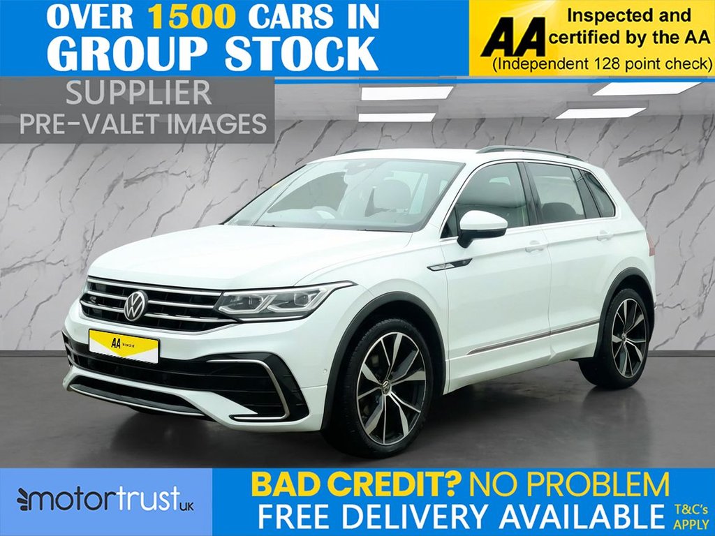 PrestonInsurance Group 20, 0 Previous Owners, This 2021 Volkswagen Tiguan TSI R Line boasts a single owner and a clear vehicle history check, offering you peace of mind. Powered by a 1.5 litre Euro 6 compliant petrol engine, this R Line trim model combines style with efficiency. Inside, youll find a heated leather trimmed three spoke multifunction steering wheel and gear knob, part of the Winter Pack which also includes heated seats. For convenience and safety, it features Adaptive Cruise Control with Predictive Cruise Control and the Assistance Pack Plus, which includes Blind Spot Assistance and front and rear parking sensors. The Discover Media Navigation system with streaming and internet capabilities, along with Bluetooth connectivity, keeps you connected and on the right path. The Tiguan offers a generous boot space, making it ideal for families or those who need extra room for luggage or shopping. Its performance is also noteworthy, accelerating from 0 to 60 miles per hour in just 9.2 seconds, demonstrating a responsive driving experience. These features, combined with its single owner provenance and clear history, indicate that this Volkswagen Tiguan is a well maintained and desirable option compared to similar vehicles on the market. Part Exchange Welcome. All Majors Cards Accepted. We Have Finance Available. A Wide Range of Warranties. We Also Offer Low Cost, Nationwide Delivery Available From £1.50 a Mile. **Every endeavour is made to ensure specifications and descriptions are correct. Due to model changes specification may vary. Phone for details. MPG figures shown are government official figures.**.First Aid Kit and Warning Triangle, Front Underbody Guard, Greyson Cloth with Art Velours Microfleece Grey Titan Black Flint Grey, Pure White, 1 x USBC Connection, 12V Socket Luggage Compartment, 12V Socket in Centre Console in Storage Area, 12V Socket on Rear of Front Centre Armrest, 20in Alloy Wheels Misano Black DiamondTurned Surface, Adaptive Cruise Control ACC with Predictive Cruise Control, Airbags, Alarm with Interior Protection with Deactivation via Infotainment System, Ambient Lighting Pack, AppConnect, Assistance Pack Plus, Automatic ComingLeaving Home Lighting Function, Automatic Dimming Rear View Mirror, Automatic Hazard Lights Activation Under Emergency Braking, Black Grained Lower Door Protectors with Chrome Insert, Black Rooflining, Body Coloured Bumpers and Door Handles, BodyColoured Door Mirrors with Integrated Indicators, BodyColoured Roof Spoiler Rear, Chrome Plated Electric Mirror Adjustment Switch Surround, Chrome Plated Electric Window Button Surrounds, Chrome Side Window Surrounds, Chrome Trim Twin Trapezoid Styling Elements on Lower Bumper Left and Right, Climate Control 3Zone Electronic Air Conditioning with Automatic Air Recirculation, Cup Holders Front x2, Decorative Inserts Carbon Grey in Dash and Front Door Trim Panels, Digital Cockpit Pro, Discover Media Navigation Infotainment System including Streaming and Internet, Driver Alert System Fatigue Detection, Driver Profile Selection Choice of Three Settings Eco Normal and Sport Modes, Drivers and Passengers Safety Optimised Head Restraints, Dusk Sensor Automatic Driving Lights, Electric Windows Front and Rear, Electrically Heated Adjustable and Foldable Door Mirrors with Memory, Electronic Engine Immobiliser, Electronic Parking Brake with Auto Hold Function, Electronic Stability Control ABS ASR EDL EDTC and Trailer Stabilization, Emergency Assist, Front Air Intake with Chrome Strip, Front Assist with City Emergency Braking System and Pedestrian Monitoring, Front Footwell Illumination, Front Passengers Seat Folding Backrest, Front Sports Seats with Height and Lumbar Adjustment, Glovebox, Heated Front Seats, Heated Leather Trimmed Three Spoke Multifunction Capacitive TouchSensitive Steering Wheels and Gear Knob, Heated Rear Window, Heated Windscreen Washer Jets, Height and Reach Adjustable Steering Wheel, HeightAdjustable Front ThreePoint Seat Belts with Tensioners, High Level 3rd Brake Light, Instrument Lighting White Adj