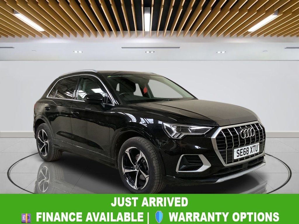 2 Previous Owners, Why This Audi Q3 Wins? This 2019 Audi Q3 TDI Sport is a premium compact SUV that combines efficiency, style, and practicality, with exceptionally low mileage of just 57,500 miles. Powered by a smooth and economical 2.0 litre Euro 6 diesel engine, it delivers a refined driving experience, offering both confident performance and impressive fuel economy. The Sport trim adds dynamic styling cues and enhanced features, giving the Q3 a sporty yet sophisticated presence on the road. Inside, the Q3 is designed for comfort and convenience, reflecting Audis renowned build quality. Its wellmaintained interior and technology features provide a practical and enjoyable driving experience. The clear service history, with the last service completed on 15th March 2026 at 57,500 miles, offers reassurance for the next owner, ensuring the vehicle is in excellent condition and ready for everyday use. Your Peace of Mind? Clear vehicle history check Optional 336month extendable warranties Free 12month AA roadside assistance Fully prepared to showroom standard with its existing MOT and servicing, and we can organise any further MOT or service enhancements at your request. Drive Away, Insurance Available No hidden or extra costs, like admin fees Autotraders 2024 Insights: Top 3 Audi Q3 Buyer Priorities: Premium build quality and interior comfort Fuel efficiency and low running costs Practicality and compact SUV versatility With an impressive 52 mpg fuel economy, low CO2 emissions, and a strong service history, this Audi Q3 TDI Sport offers economical running costs without compromising on style or performance. Its combination of reliability, efficiency, and premium features makes it a compelling choice for drivers seeking a highquality compact SUV. StressFree Next Steps: Free Part Exchange Valuation £0 Deposit Car Finance Includes free credit checker Reserve for £99 Fully refundable.6 Passive Loud Speakers, Audi Connect Infotainment Services Plus (3 Year Subscription From New), Audi Connect Safety and Service ecall, Audi Smartphone Interface, Bluetooth Interface, DAB Digital Radio, MMI Navigation Plus with High Resolution 10.1in Touchscreen Colour Display, Tow Bar Preparation, 18in Alloy Wheels 5DoubleArm Design, Aluminium Roof Rails, Aluminium Window Trims, Anti Theft Locking Wheel Bolts, B and CPillar Trim in HighGloss Black, Body Coloured Door Mirrors, Bumpers in Full Body Colour Paint Finish, Door Mirrors Electrically Adjustable and Heated with Integrated LED Side Indicators, Frame of Front Side Air Inlets in Selenite Silver Matt, Front Spoiler in Selenite Silver Matt, Grille Vertical Bars in Aluminium Silver Matt, Radiator Grille Titanium Black, Rear Diffuser in Selenite Silver Matt, Tyre Repair Kit, Windscreen with Acoustic Glazing, 3Spoke LeatherTrimmed MultiFunction Steering Wheel Height and Reach Adjustable, Adjustable Rear Seat BenchBackrest, Aluminium Look Interior Elements, Audi Virtual Cockpit 10.25in Display, Auto Dimming and Frameless Rear View Mirror, Cloth Headlining in Lunar Silver, Detail in Dashboard Around the MMI Touch Colour Display, Door Sill Trims with Aluminium Inlay, DualZone Electronic Climate Control, Front Centre Armrest, Front and Rear Floor Mats, Inlays Micrometallic Silver, Luggage Compartment Sill Protection in Stainless Steel, Manual Seat Adjustment for Front Seats, NonSmoking Package, Power Operated Tailgate, Tool Kit, LED Headlights with LED Daytime Running Lights and Dynamic Rear Indicator, LED Rear Lights, Light and Rain Sensors, Progressive Steering, Standard Suspension, 6Airbag System, AntiTheft Alarm, Audi Drive Select, Audi PreSense Front with Pedestrian and Cyclist Recognition, Audi Side Assist, Cruise Control System with Speed Limiter, ESC Electronic Stabilisation Control inc ABS ASR and EDL, First Aid Kit and Warning Triangle, Hold Assist, ISOFIX Child Seat Mounting for the Front Passenger Seat with Front Passenger Airbag Deactivation and ISOFIX Child Seat Mounting and Top Tether for the Outer Rear Seats, Lane Departure Warning, PreSense Basic, Rear Parking Sensors, Seat Belt Monitoring, Tyre Pressure Warning Light, Voice Control System with Natural Language Interaction