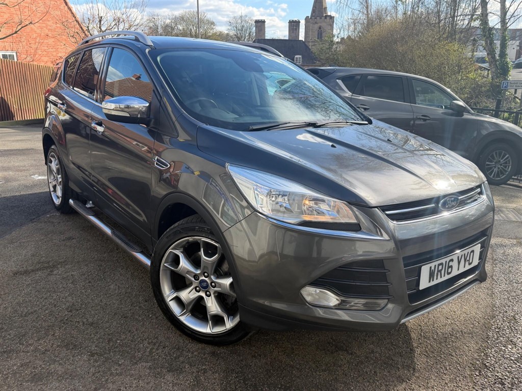 Mansfield2 Previous Owners, This 2016 Ford Kuga TDCi Titanium offers an exceptional blend of efficiency and technology. Powered by a robust 2.0L Diesel engine, this Euro 6 compliant model boasts an impressive fuel economy of up to 60 mpg, making it a cost effective choice for your journeys. The Titanium trim level ensures a comfortable and convenient driving experience, featuring Dual Zone Electronic Automatic Temperature Control for personalised cabin comfort, and Bluetooth handsfree phone connectivity for seamless communication on the go. Automatic headlights further enhance safety and ease of use, adapting to changing light conditions without driver intervention. The low CO2 emissions of this Ford Kuga are a significant advantage, indicating its environmental consideration compared to many other vehicles in its class. This, combined with its excellent fuel efficiency, means you can enjoy your driving while being mindful of running costs and environmental impact. The combination of practical features and economical performance makes this Kuga TDCi Titanium a well rounded and appealing option for those seeking a reliable and capable SUV.. 17in Alloy Wheels 5x2 Spoke,4.2in TFT Display,ABS Antilock Braking System,AUX Connection,Air Conditioning Dual Zone Electronic Automatic Temperature Control,Airbags Drivers Knee,Airbags Front Passenger,Airbags Front and 2nd Row Curtain,Airbags Side Impact,Alarm Thatcham Category 1 with Volume Sensing and Perimeter,Armrest Folding Centre Rear,Audible Text Messaging,Automatic Dimming Rear View Mirror,Automatic Rain Sensing Wipers,Bluetooth Handsfree Phone,Body Colour Exterior Mirrors,BounceBack Sensors,Courtesy Light Footwell Illumination,Courtesy Light Front and Rear Reading Lights,Cruise Control with Speed Limiter,Daytime Running Lamps,Door Handles Body Colour,Door Lever Aluminium,Door Mirrors Electrically Operated and Heated,Door Mirrors Puddle Lights,Door Mirrors with Integrated Indicators,Drivers Airbag,Drivers Seat Lumbar Support,EBA Emergency Brake Assist,EBD Electronic Brakeforce Distribution,EPAS Electric Power Assisted Steering,ESP Electronic Stability Programme,Electric Windows Front and Rear with One Touch,Emergency Assistance,Emergency Brake Warning,Floor Mats Carpet Front,Ford EasyFuel Capless Refuelling System,Ford Power Engine StartStop Button,Ford SYNC,Front Fog Lights,Front Fully Adjustable 4 Way Head Restraints,Front Seat Passengers Manual Lumbar Support Adjustment,Front upper grille Highgloss black with chrome bar,Gearshift Knob Leather,HLA Hill Launch Assist,Headlights Automatic,Headlights Courtesy Delay,Heated Front Windscreen,Heated Washer Jets,IPS Intelligent Protection System,ISOFIX,Large Stowage Bin,Load Compartment Tie Down Hooks,Locking Wheel Nuts,Portable Audio Device Connector,RSC Roll Stability Control,Rear Seat Folding Centre Armrest with 2 Integrated Cup Holders and Flip up Storage,Rear Spoiler Body Colour,Remote Central Locking,Scuff Plates FrontStainless Steel,Seats 6040 Rear Split Back,Seats Drivers Manual Height and ForeAft Adjustment,Seats Front Sports,Sony CDRadio PlayerMP3 Compatibility,Sony DAB Digital Radio,Spare Wheel Mini Steel,Speakers x8,Steering Column Rake and Reach Adjustment,Steering Wheel 4 Spoke Leather Trimmed,Steering Wheel Multifunction,Storage Upper Instrument Panel,Stowage Pockets Front Seatback,TSC Trailer Stability Programme,TVC Torque Vectoring Control,Tinted Glass Green,Traction Control TC,Twin Exhaust Outlet,Two 12V Power Socket,Tyre Pressure Monitoring System,USB Connection iPod Connectivity,Variable Dimming of Instrument Cluster and Radio Screen Display,Voice Control Audio