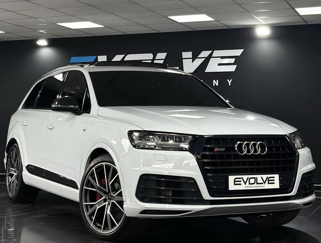 Newport2 Previous Owners, Excellent Example Audi SQ7 7 Seater in Glacier White with 78,600 miles, With Full Service History Specification to include; Panoramic glass sunroof Leather package 22" x 9.0J 5Vspoke aluminium star design Audi Sport alloy wheels with 285/40 R22 tyres Comfort and Sound Pack Technology pack Audi Matrix LED headlights Titanium Black Styling Pack with Black roof rails Metallic paint Red painted brake calipers with S Logo Ambient Lighting Pack 3spoke flatbottomed leather multifunction Sports steering wheel Glacier white, metallic.Comfort and Sound Package, Matrix LED Headlights with LED Rear Lights and Dynamic Rear Indicators, Technology Package, BOSE 3D Sound System, Glacier White, Steering Wheel 3Spoke LeatherMultifunctionFlat BottomedSportsShift Paddles, Leather Package, Titanium Black Styling Pack with Black Roof Rails, Red Painted Brake Calipers with S Logo, Panoramic Glass Sunroof, 22in Alloy Wheels 5VSpoke Aluminium Star Design Audi Sport TitaniumLook GlossTurned Finish, 20in Alloy Wheels 5Arm Off Road Design Matt Titanium Look Gloss Turned, 6Airbag System, 7 Seats, Active Sound Exhaust System, Adaptive S Air Suspension, Aluminium Roof Rails, Aluminium Window Trims, AluminiumEffect Door Mirror Housings, Anti Theft Locking Wheel Bolts, AntiTheft Alarm, Audi Beam, Audi Connect Infotainment Services 36 Month Trial, Audi Connect Safety and Service, Audi Drive Select, Audi Hill Hold Assist, Audi Parking System Plus, Audi Phone Box with Wireless Charging, Audi PreSense City, Audi Smartphone Interface, Audi Sound System, Audi Virtual Cockpit, AutoDimming RearView Mirror, Automatic Headlight Adjustment, Bluetooth Interface, Brake Calipers Black with S Logo, Cloth Headlining in Black, Colour Drivers Information System with 7in HighResolution TFT Screen, Cruise Control with Speed Limiter, Deluxe FourZone Automatic Climate Control, Door Mirrors HeatedElectrically AdjustableFolding, Door Sill Trims with SQ7 Logo, DualBranch Oval Twin Tailpipes in Chrome Finish, ESC Electronic Stabilisation Control inc ABS ASR and EDL, Electric Windows Front and Rear, Electrically Adjustable 4Way Lumbar Support, Electrically Adjustable Front Seats, Electromechanical Parking Brake, Email and Text Messages can be Displayed on your Vehicles MMI, First Aid Kit and Warning Triangle, Front Bumper Air Inlet Struts in Aluminium Effect, Front Centre Armrest Adjustable, Front and Rear Floor Mats, Fuel Tank 85L and 24L AdBlue tank, Heated Front Seats, HighBeam Assist, Hill Descent Control, ISOFIX Child Seat Mounting, Interior Light Package, Keyless Go, LED Headlights with LED Rear Lights and Dynamic Rear Indicators and HighBeam Assist, Light and Rain Sensors, Luggage Compartment Cover Electric, Luggage Compartment Sill Protection in Stainless Steel, MMI Navigation Plus including MMI Touch, MMI Radio Plus and DAB, Online Media Streaming Audi MMI Connect App Required, Pedals in Stainless Steel, Power Operated Tailgate, Power Steering, Privacy Glass, Rear View Camer