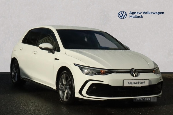 NewtownabbeyAgnew Volkswagen Mallusk are delighted to offer this stunning 2023 Volkswagen Golf 8 RLine 1.5 eTSI 150PS 7speed DSG 5 Door in Pure White with Keyless Entry Winter Pack with Heated front seats and heated leather steering wheel Rear View Camera Rear Privacy Glass Discover Media Navigation System with AppConnect for Apple CarPlay and Android Auto Dynamic road sign display Multifunction front facing camera for distance control Dynamic road sign display "KeylessGo" Light and Sight Pack with Autodimming interior rearview mirror Lane Assist, Front Assist and Adaptive Cruise Control Side Assist including folding wing mirrors RLine Body Styling Pack R Line Sports Seats with Integrated Head Rests Front and rear parking sensors
