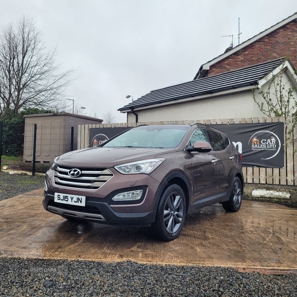 LurganInsurance Group 20, NI Car Sales are pleased to present this very desirable March 2015 Hyundai Santa Fe Premium SEThe Hyundai has covered ONLY 92000 miles and has been kept to a very high standard and comes complete with a stamped documented service history.Overall the car presents itself close to immaculate inside and out, the car has been cherished by its previous owner who has owned the car from 2022 with no wear on the seats, carpets etcThe specifications on this Model Premium Santa Fe are endless! heated leather seats, reversing camera with cross traffic alerts,power tail gate, winter pack with heated steering wheel, 18ins alloys NAV, and much much more! excellent family car ready to go.We have priced this car to be the most competitive in Northern Ireland, if you require any more information please don't hesitate to contact us.Car is fully HPI clear, mechanically inspected and professionally detailed.We are pleased to ensure the car comes with a comprehensive 3 month warranty.For a personal finance quote or to book a test drive please contact the sales team on.Aaron 07510629504