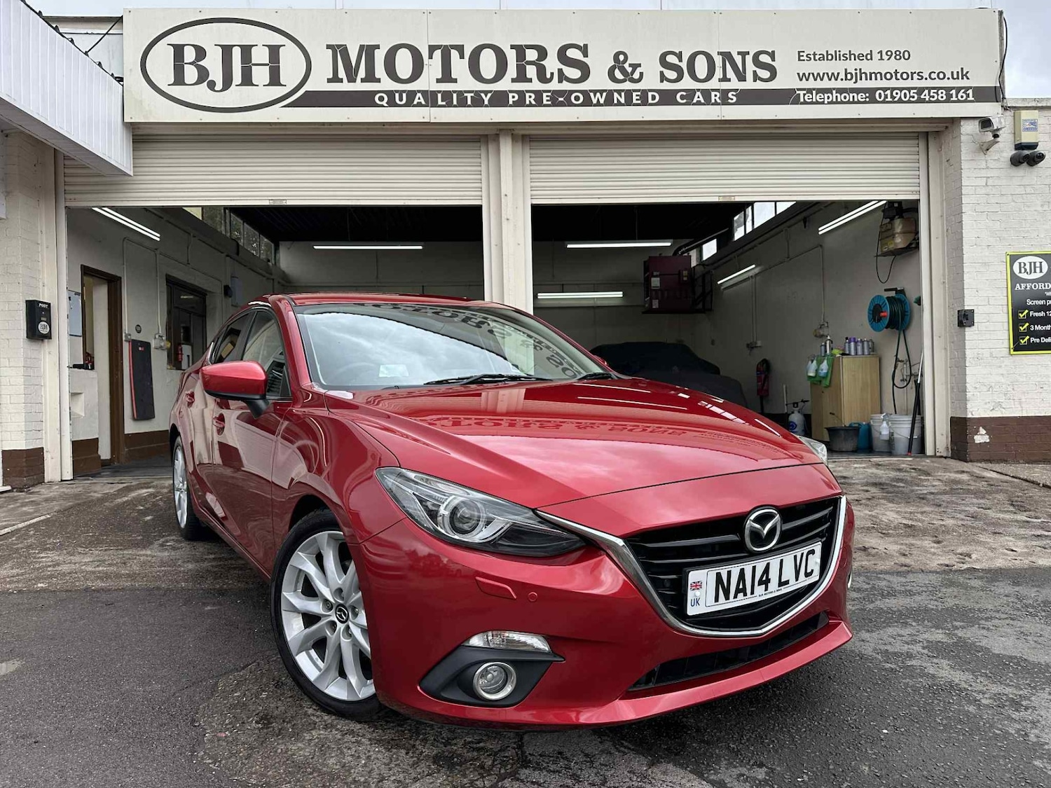 WorcesterInsurance Group 18, 2 Previous Owners, This 2014 14Reg Mazda 3 2.0 SkyActiveG Sport Nav saloon is in amazing condition throughout!! Nicest we've seen in fact!! 3 Owners in total, 78,963 miles and comes with lovely service history, 7 service receipts!! Presented here in Soul red with full black leather interior. Specification includes Satellite navigation, Bluetooth connectivity, Electric drivers seat, Heated seats, BiXenon headlights, Automatic lights and wiper, Parking sensors, BOSE surround sound, Cruise control, Headup display, Climate control, Keyless entry and start and much much more!! Only £35 road tax, ULEZ free, Petrol, Top of the range, what more could you need!! WOW!!