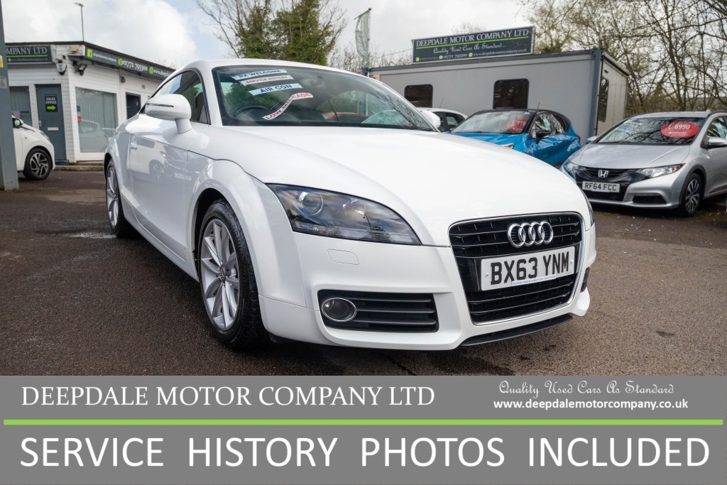 PrestonInsurance Group 30, 2 Previous Owners, FULL DEALER SERVICE HISTORY, 73000 miles. HERE WE HAVE AN ABSOLUTELY STUNNING LOW MILEAGE EXAMPLE OF AN AUDI TT TFSI SPORT FINISHED IN IBIS WHITE PAINTWORK. THIS STYLISH CAR COMES FULLY EQUIPPED WITH 1/2 LEATHER ALCANTARA, BLUETOOTH MEDIA STREAMING, DAB RADIO. FRONT SPORTS SEATS AND 17 INCH ALLOY WHEELS. ITS VW/ AUDI GROUP GERMAN BUILD QUALITY ENGINE IS RENOWNED FOR ITS RELIABILITY AND THE 1.8 PETROL ENGINE IS BALANCED BEAUTIFULLY FOR PERFORMANCE AND ECONOMY. A LOW MILEAGE WELL MAINTAINED EXAMPLE OF AN AUDI TT WITH A FULL MAIN DEALER SERVICE HISTORY 12 SERVICES . STRIKING SLEEK GOOD LOOKS AND LOTS OF CURB APPEAL. RECENTLY SERVICED AND LONG MOT WITH NO ADVISORIES. FULLY HPI CHECKED AND CLEAR. WE OFFER FULL DEALER FACILITIES INCLUDING PART EXCHANGE, FINANCE AT COMPETITIVE RATES, INDEPENDENT WORKSHOP AND EXTENDED WARRANTIES ARE AVAILABLE. ENJOY THE PROTECTION OF PURCHASING FROM A MOTOR DEALERSHIP ESTABLISHED IN 1994 Climate Control Electronic 17in Alloy Wheels 5Spoke V Design Spoiler Retractable Exhaust Tailpipe Twin 12V Power Socket ABS AntiLock Braking System ASR Anti Slip Regulation AUXIN Socket Airbags Driver Airbags Front Passenger Airbags Front Side System Anti Theft Locking Wheel Bolts AntiTheft Alarm Black Leather Centre Console Armrest Pad Car Jack Concert Radio Door Mirrors Electrically Adjustable and Heated Drivers Information System DIS EDL Electronic Differential Lock ESP Electronic Stability Programme Electric Windows Front First Aid Kit Floor Mats Front Fog Lights Front Sports Seats Halogen Headlights Handbrake Grip Black Leather Inlays Aluminium Laser MP3 File Compatibility Power Steering Electromechanical/Servotronic Speed Sensitive Remote Central Locking Seats Drivers Manual Height Adjustment Speakers Active Front and Rear SplitFolding Rear Seats Steering Wheel 3Spoke Leather Flat Bottomed Steering Wheel Height and Reach Adjustable Tool Kit Tyre Mobility System Warning Triangle.