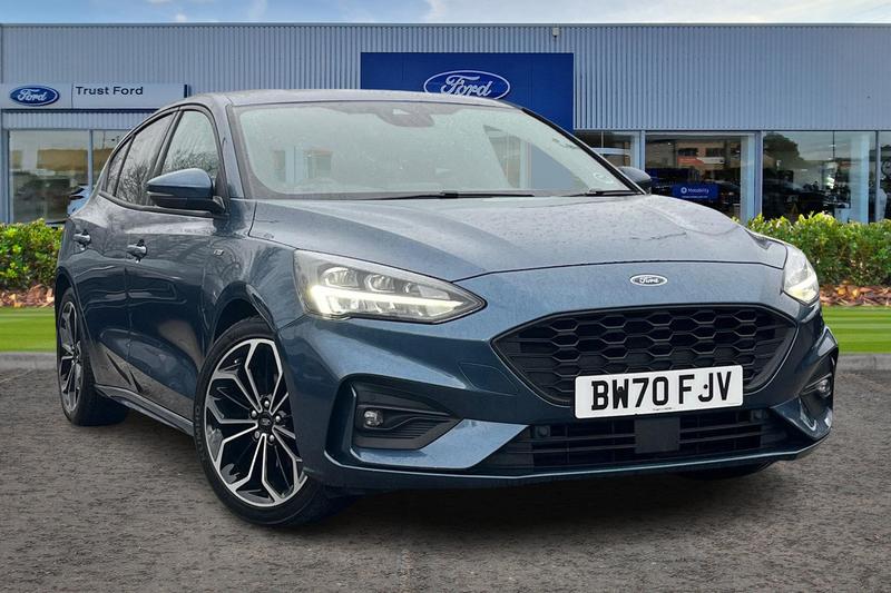 Insurance Group 14, 12.3 Digital instrument cluster, Bluetooth system, Digital clock, Ecall, Easy fuel capless refuelling system, Eco mode, Ford SYNC 3 navigation with 8 TFT touchscreen, DAB radio and app link Android auto/Apple carplay, Intelligent speed assist, Lane keeping system lane keeping alert and lane keeping aid, PAS, Selectable drive mode, Trip computer, Auto dimming rear view mirror, Auto headlamps (on/off), Automatic rain sensing wipers, Body colour large rear spoiler, Body coloured bumpers, Body coloured door handles, Body coloured electrically operated and heated door mirrors with side indicators, Electrically operated front and rear windows with one touch opening and closing, Front variable intermittent wipers with electric wash, Heated rear window, LED daytime running lamp, Polished twin tailpipe, Power folding door mirrors with puddle lights, Quickclear heated windscreen, Rear privacy glass, Rear side wing doors, STLine upper and lower grille with full body styling kit and wing badges, Tailgate wash/wipe, Third brake light, Unique door and instrument panel inserts, 3 seat bench in 2nd row, 3 spoke flat bottomed Sensico steering wheel with red stitching, 6 way power adjustable driver seat, Aluminium gear knob, Dark headliner, Driver's lumbar support, Dual zone electronic air temperature control, Front and rear floor mats with red stitching, Heated driver and front passenger seats, Heating for Sensico steering wheel, Height adjustable front headrests, Isofix child seat preparation,