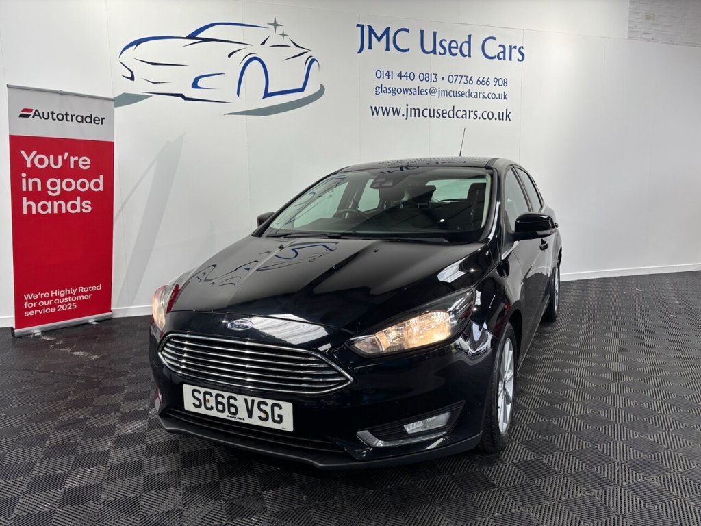 GlaInsurance Group 14, 1 Previous Owner, The Ford Focus 1.5 TDCi Titanium Hatchback is an excellent allrounder, combining strong fuel efficiency with a comfortable and refined driving experience. Its 1.5L diesel engine produces around 118 bhp while delivering outstanding economy of up to 70+ mpg, making it ideal for both long motorway journeys and daily commuting. The Titanium trim adds a premium feel with features like cruise control, parking sensors, and a wellbuilt interior, while the Focus is also known for its sharp handling and smooth ride. Overall, its a practical, reliable, and economical hatchback thats easy to live with. AwardWinning Family Business Premium Customer Service & Aftercare Located just off Junction 24 of the M8 in Glasgow, we offer an impressive range of quality used cars, all displayed in our indoor showroom. Each vehicle is meticulously prepared to meet our high standards, ensuring youre driving away with complete confidence. We welcome part exchanges and offer tailored finance and warranty packages to suit every budget. Need help choosing the right car? Our team is here to provide expert advice and support. Cant make it in person? No problem! We offer live video walkarounds of our cars upon request, and you can complete all finance agreements securely online. For more details or to arrange a viewing, contact Martin today. JMC USED CARS WWW.JMCUSEDCARS.CO.UK glasgowsalesjmcusedcars.co.uk.£20 ROAD TAX, BLUETOOTH, DAB RADIO, HEATED FRONT SCREEN, LOW RATE FINANCE AVAILABLE, Shadow Black, 16in Alloy Wheels 10 Spoke, Active City Stop, Airbags Driver and Front Passenger, Airbags Front Side Impact, Airbags Front and Rear Side Curtain, Alarm Thatcham Category 1 with Volume Sensing and Perimeter, AntiLock Braking System ABS with Electronic Brake Force Distribution EBD, Automatic Dimming Rear View Mirror, Automatic Headlights, Centre Console Premium with Sliding Armrest Covered Stowage Bins, Chrome Finish on Upper Door Line, Colour TFT Instrument Cluster Display, Courtesy Light Front and Rear Passengers LED Overhead and Load Compartment, Courtesy Lights Ambient LED Courtesy Lighting Single Colour, Cruise Control with Active Speed Limiter, DEATC DualZone Electronic Automatic Temperature Control, Door Mirrors Heated Electric Integrated Side Indicators Body Coloured, Drivers Seat Lumbar Adjust, EPAS Electric Power Assisted Steering, Electronic Stability Programme ESP with Traction Control and Emergency Brake Assist EBA, Emergency Brake Warning Automatic Hazard Warning Lights, Ford EasyFuel Capless Refuelling System, Ford Eco Mode Driver Information System, Ford Power Starter Button, Ford SYNC3 DAB Navigation System, Front Floor Mats, Front Fog Lights, Front Grille Chrome Finish, Front Seat Drivers Manual Height and ForeAft Adjustment, Front Seat Passenger Manual ForeAft Adjustment, Front Seats Sports Style, Front Suspension Independent with MacPherson Struts and AntiRoll Bar, Halogen Headlights with Black Surround, Headlights Courtesy Delay, Height and Lumbar Adjust on Passenger Seat, Hill Start Assist, IPS Intelligent Protection System, Keyless Entry, Keyless Start, LED Daytime Running Lights, LeatherTrimmed Handbrake, Locking Wheel Nuts, MyKey, Parking Distance Sensors Rear, Quickclear Heated Front Windscreen with Heated Washer Jets, Rain Sensitive Windshield Wipers, Rear Lights LED, Rear Seat Folding Centre Armrest with Two Integrated Cup Holders, Rear Spoiler Body Colour, Rear Suspension Independent Control Blade MultiLink System and AntiRoll Bar, Remote CentralDouble Locking, SYNC3 with 8in Touchscreen DAB Audio System, Scuff Plates Front Aluminium Finish with Ford logo, Seats ISOFIX Mounting Provision for Child Seats, Spare Wheel Mini Steel, Steering Column Rake and Reach Adjustment, Steering Wheel 3 Spoke Leather Trimmed, TVC Torque Vectoring C