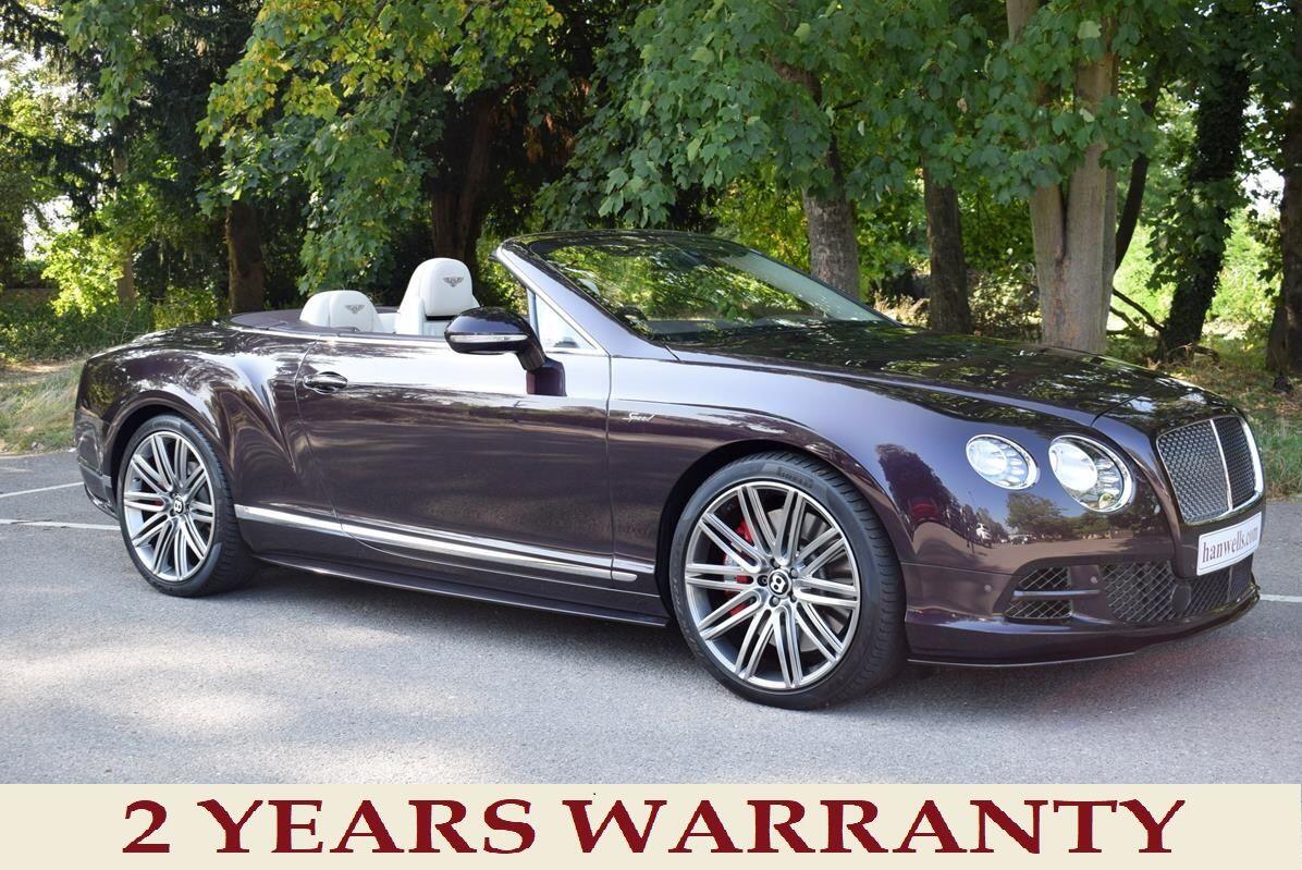 2 Previous Owners, This is one of our 50 Bentleys in stock: 2015 Model/64 Bentley Continental GTC Speed Convertible with Mulliner Spec. Finished in unmarked Damson with a Black hood and 21 inch Speed alloys, with Linen hide as the main trim, embossed Flying Bs and secondary hide in Damson. Only 18,700 miles with Full Service History. This car is like new and is immaculate throughout. Not to be missed at only £59,999 Please see our website www.hanwells.com to view our full selection.