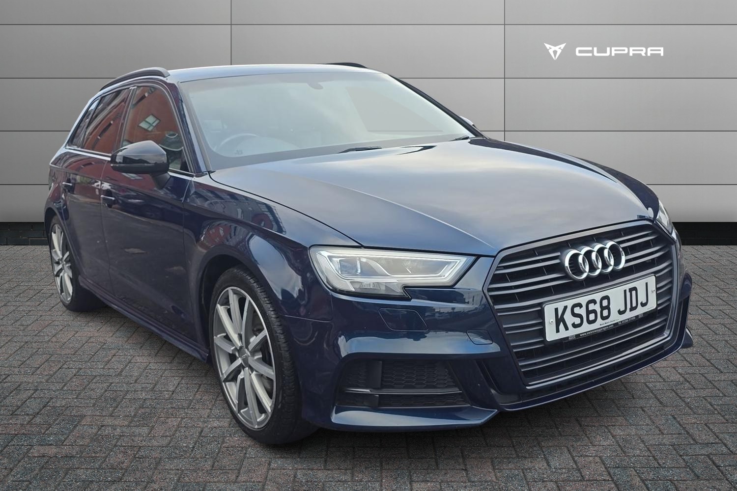2 Previous Owners, Audi connect, Audi drive select, Audi smartphone interface, Automatic start/stop system, Colour driver's information system display, Electro mechanical power assisted steering, Mobile telephone preparation bluetooth interface, SD card based satellite navigation system, Service interval indicator, Speed limit display, Voice control system, Voice recognition for navigation system, 2 USB interfaces and AuxIn jack, Audi music interface, CD player, DAB Digital radio, MMI radio plus with 7" colour MMI screen and MMI controller, Auto dimming rear view mirror with light and rain sensors, Black door mirrors, Body colour roof spoiler with aerodynamic inserts in high gloss black, Chrome exhaust tailpipes, Electric front windows, Electric rear windows, Electrically adjustable and heated door mirrors with integrated LED side indicators, Heated windscreen washer jets, LED daytime running lights, Privacy glass dark tinted rear and rear side windows from Bpillar backwards, Rear wiper, Sport specific side air inlet grille and diffuser insert, 3 adjustable rear headrests, 4 lashing points to secure luggage, Adjustable front centre armrest, Black cloth headlining, Dual zone electronic climate control, Front and rear interior lights with delay, Front/rear floor mats, Glovebox light, Height and reach adjustable steering wheel, Illuminated door sill trims with S logo, Isofix child seat preparation for front passenger/outer rear seats inc passenger airbag deactivation, Stainless steel pedals, Storage compartments in doors side trims, centre console and under front drivers seat, Black styling pack A3/S3, LED interior light pack A3/RS3, Non smoking pack A3, Storage and luggage pack A3/RS3, 3 point seatbelts on all seats, ABS/EBD, Active bonnet, Active front headrests, Airbags front driver/passenger, front & rear side, curtain, drivers knee, ASR, EDL, Electromechanical parking brake, ESC Electronic Stability Control + traction control, Front passenger airbag deactivation, Hill hold assist, Manual rear child locks, MultiCollision braking, Seatbelt warning, Tyre pressure warning, Warning triangle and first aid kit, Anti theft alarm, Antitheft wheel bolts, Remote control central locking, Thatcham category 1 alarm + immobiliser, Aluminium air vent surrounds, Aluminium trim elements, Matt brushed aluminium inlays, 18" 10 spoke design alloy wheels in matt titanium look with diamond cut finish, Tool kit, Tyre repair kit,
