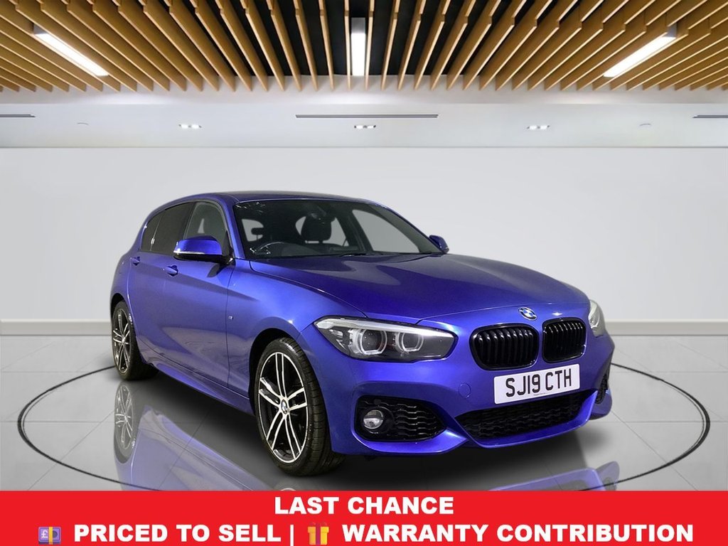 Milton KeynesInsurance Group 20, 2 Previous Owners, Why This BMW 1 Series Wins? This 2019 BMW 1 Series 118i M Sport Shadow Edition stands out with its exceptionally low mileage of just 43,089 miles. Finished in the soughtafter M Sport Shadow Edition trim, it combines efficiency and style with a 1.5 litre Euro 6 petrol engine. Interior highlights include heated front seats for added comfort, a premium Harman Kardon loudspeaker system for an immersive audio experience, and automatic air conditioning to maintain a pleasant cabin temperature. Practical touches such as a rain sensor with automatic headlight activation and bright LED headlights further enhance the driving experience. Delivering a brisk 062mph in just 8.5 seconds, this 1 Series offers dynamic performance alongside everyday practicality with its generous boot space. Your Peace of Mind? Clear vehicle history check Optional 336month extendable warranties Free 12month AA roadside assistance Last Serviced, September 2025 MOT until June 2026 Drive Away, Insurance Available No hidden or extra costs, like admin fees Autotraders 2024 Insights: Top 3 1 Series Buyer Priorities: Low mileage and strong reliability Premium comfort and technology Sporty driving performance This Shadow Edition meets these priorities perfectly, offering a rare lowmileage example with premium features, advanced interior technology, and responsive performance that outshines many rivals. StressFree Next Steps: Free Part Exchange Valuation £0 Deposit Car Finance Includes free credit checker Reserve for £99 Fully refundable .12V Power Socket Centre Console, 12V Power Socket Passenger Footwell, BMW ConnectedDrive Online Services, BMW ConnectedDrive Services, BMW Emergency Call, BMW Navigation System, BMW Professional Radio Single CD and MP3, BMW TeleServices, Bluetooth Hands Free with USB Audio Interface, DAB Digital Radio, Loudspeaker System Harman Kardon, Real Time Traffic Information, Rear Window Aerial, Remote Services, Shark Fin, 18in Alloy Wheels M Double Spoke 719M Bicolour Jet Black, BMW Mobility Tyre Sealing System, Black HighGloss Kidney Grille Frame with Black Slats, Direction Indicator Side Repeaters Integrated in Exterior Mirrors, Direction Indicator Lights Clear Lenses, Electric Windows Front and Rear with OpenClose Fingertip Control AntiTrap Facility and Comfort Closing Function, Exhaust Tailpipes Dark Chrome, Exterior Mirrors Electrically Adjustable, Exterior Parts in Body Colour, Exterior Trim High Gloss Shadowline, Heat Protection Glazing with Green Tint, LED Headlights with Darkened Surround, Locking Wheel Bolts, M Aerodynamic Bodystyling, M Logo Designation Chrome Side, Rear Fog Light Offside, Reversing Light in Rear Cluster Nearside, Run Flat Tyres, Sun Protection Glazing, Tyres Reduced Rolling Resistance, Air Conditioning Automatic Single Zone, Ambient Lighting Switchable BMW Classic Orange Cold White LED, Armrest Front with Sliding Adjustment, Automatically Dimming Rear View Mirror, Central Locking Switch Doors Fuel Filler Cap Luggage Compartment, Cupholders Two with Sliding Cover and Inlay Mat, Door Sill Finishers M Designation, Extended Lighting, Extended Storage, Floor Mats Velour, Gearshift Lever with M Designation ShortShift, Glove Compartment, Glovebox Handle with Chrome Surround, Grab Handles Integrated in Roof Linings Four, Handbrake and Gear Knob Leather, Head Restraints Rear and Folding, Headlining Anthracite, Instrument Cluster, Interior Lighting Front Centre Over Interior Mirror and Rear Centre, Interior Trim Aluminium Hexagon with Estoril Blue Finisher, Lashing Eyes in Luggage Compartment at Sill x2, Luggage Compartment Light, Luggage Compartment Access via BMW Roundel, Multifunction Controls for Steering Wheel, Non Smokers Package, Personal Profile, Rain Sensor with Automatic Headlight Activation, Seats 6040 Split Folding Rear, Side Armrests Front and Rear Integrated into Door Trim, Sport Seats Front, StartStop Button with Comfort Go Keyless Engine Start