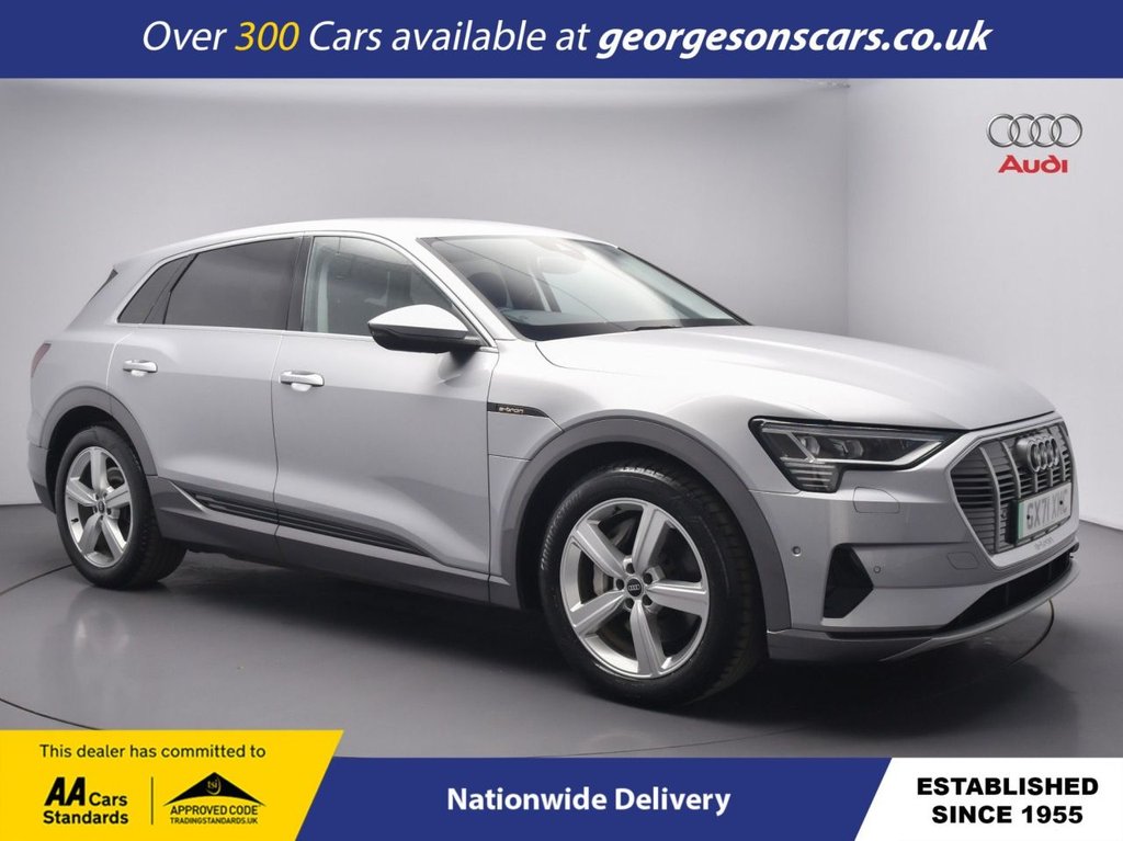 Liverpool0 Previous Owners, The Audi etron 50 Technik combines dual electric motors with 313hp, delivering 062mph in 6.9 seconds and up to 191 miles WLTP range in this allwheeldrive quattro setup with a smooth singlespeed automatic transmission. The Technik trim offers refined premium style with a sophisticated interior for versatile electric SUV driving. With one owner, this etron is in excellent condition. Navigate effortlessly with integrated satellite navigation, Apple CarPlay, Bluetooth and DAB radio, ensuring seamless connectivity on every journey. Parking is a breeze thanks to the reverse camera and parking sensors, providing clear visibility and confidence in tight spaces. Stay comfortable with dualzone climate control and electric heated memory seats, offering personalised warmth yearround. Selectable drive modes provide tailored performance, whether for efficiency or dynamic driving. The spacious fivedoor SUV design includes a 660litre boot for practicality. Georgesons Cars, one of the leading used car dealerships near me, has been serving Liverpool and the wider Merseyside area since 1955. As a thirdgeneration familyrun business, we offer a wide variety of cars for sale, including over 300 quality used cars in Liverpool. Whether youre searching for cars for sale in Liverpool or reliable auto used cars, our inventory is pricechecked daily, ensuring competitive pricing. Rated 5stars on TrustPilot, Georgesons Cars proudly upholds the AA dealer promise and Chartered Trading Standards approval. Contact us today to explore our full range of cars for sale and let our team help you find your next car!.2Zone Automatic Air Conditioning, 4Way Lumbar Support for Front Seats, ABS AntiLock Braking System, Active Vehicle Alerting System AVAS, Adaptive Air Suspension, Airbags Driver, AMI Audi Music Interface Front, AntiTheft Alarm, AntiTheft Wheel Bolts and Wheel Loosening Warning, Audi Connect, Audi Connect Safety and Service ecall, Audi Drive Select, Audi PreSense Front and Basic, Audi Smartphone Interface Includes Wireless Functionality, Audi Sound System, Audi Virtual Cockpit, Auto Dimming and Frameless Rear View Mirror, Bluetooth Interface, Body Coloured Door Mirrors, Bumpers Contrasting, Cloth Headlining in Lunar Silver, Compact etron Charging System, Cruise Control with Speed Limiter, DAB Digital Radio, Door Mirrors Electrically Adjustable Heated Folding Automatically Dimming with Memory Function with Kerb View Function for Passenger Side, Door Sills with Aluminium Inlays, Electric Windows Front and Rear, Electrically Adjustable Front Seats including Memory Function for Drivers Seat, FourSpoke MultiFunction Leather Steering Wheel with Paddles, Front and Rear Floor Mats, Front Centre Armrest, Gloss Styling Pack, Heated Front Seats, Industry Plug CEE 32 A230 V, Inlays in Graphite Grey Paint Finish, ISOFIX Child Seat Mounting for Front Passenger Seat with Front Passenger Airbag Deactivation, ISOFIX Child Seat Mounting for Outer Rear Seats, Keyless Go, Lane Departure Warning, LED Headlights with FunctionOnDemand Preparation, LED Interior Light Pack, LED Rear Lights, Luggage Compartment Cover, Luggage Compartment Floor, Manual Steering Column Adjustment, MMI Navigation Plus with MMI Touch Twin Touch Screens with Haptic Feedback, Parking System Plus with 360 Degree Sensors and FunctionOnDemand Preparation, Power Operated Tailgate, Progressive Steering, Rear View Camera, Removable Net Partition, Side Airbags Front and Head Airbag System, Sun Visors with Illuminated Vanity Mirrors, Tool Kit, Tyre Mobility System, Tyre Pressure Warning Light, Vehicle Inlet Combo 2 EU CCS, Windscreen with Acoustic Glazing