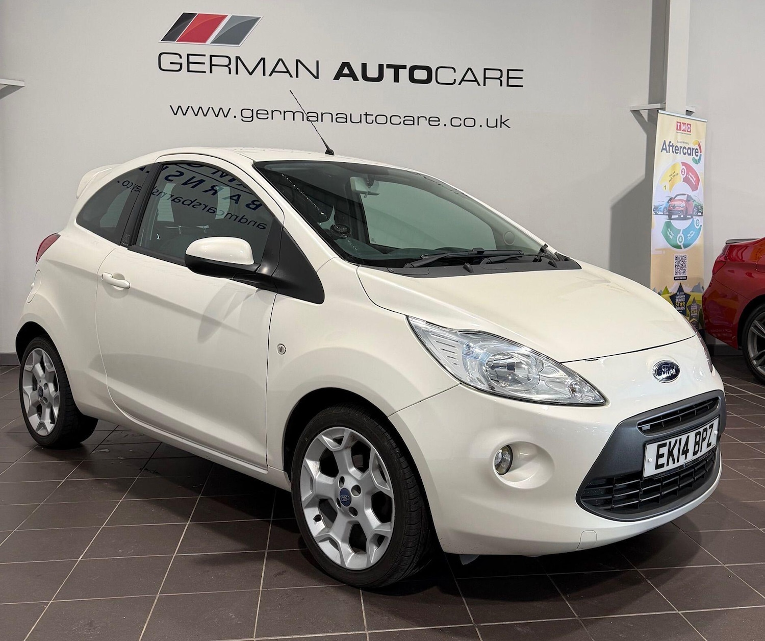 BarnsleyInsurance Group 3, 2 Previous Owners, ** SERVICE AND MOT COMPLETED BEFORE HANDOVER**German Autocare and H and M Cars Barnsley Approved VehicleDiscover this 2014 Ford Ka Zetec with exceptionally low mileage for its age, having covered just 43,156 miles. This well maintained example boasts a full service history and will come with a fresh 12 months MOT for your peace of mind. The Euro 6 compliant 1.2L petrol engine is paired with a stylish Pearl White centre console, and the Zetec trim includes desirable features such as electrically operated and heated door mirrors, a rear spoiler, and rear parking sensors to aid manoeuvring. For added safety, it is equipped with Ford's Intelligent Protection System (IPS).This Ford Ka Zetec offers significant advantages, indicated by its impressive 58 mpg fuel economy and low CO2 emissions, making it an economical choice for everyday driving. Its low insurance group rating further contributes to its affordability. A 3 month warranty is also included, providing extra reassurance with your purchase.