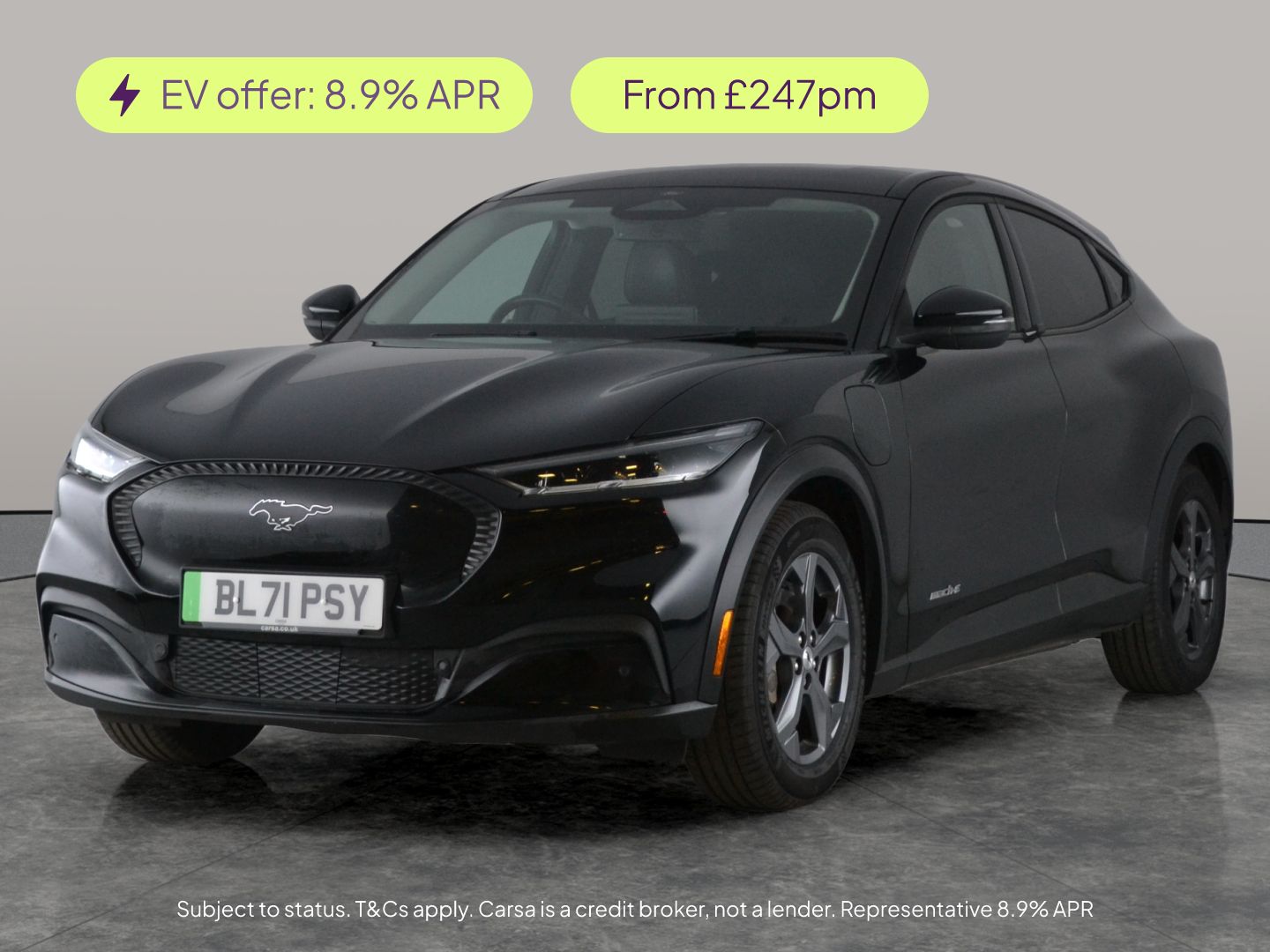 0 Previous Owners, Experience the thrill of electric driving with this Ford Mustang Mache. Enjoy a touch of luxury with a Sensico interior in Black Onyx and Grey Stitching, heated seats, and a heated steering wheel for yearround comfort. Stay connected and safe with adaptive cruise control, active lane assist, Apple CarPlay, and Ford SYNC. Keyless entry offers ease, while LED headlights, a reversing camera, and an advanced Blind Spot Information System provide confidence on every journey. Drive the future today! 2 services recorded, last serviced on 26/03/2026 at 45,555 miles. MOT to 02/12/2026. Visit our website for service history, online valuation, full vehicle specification plus multiple images. This vehicle is VAT qualifying. Any feature/option specified here is from 3rd party data. We cannot guarantee the accuracy of any specification supplied by a 3rd party. We recommend that you physically check the specification of the vehicle on site prior to purchase. This information does not form part of the buying contract. Terms & Conditions apply. We have over 2,000 cars available from our 10 national branches, check our website to see all our stock. Our Trustpilot rating is 4.4/5 with over 9,000 reviews.