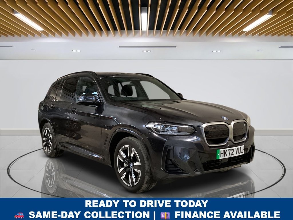 0 Previous Owners, Why This BMW iX3 Wins? This 2022 BMW iX3 M Sport is a superb oneowner example with very low mileage for its age at just 28,183 miles. Combining sporty M Sport styling with the smooth refinement of electric power, it delivers a premium SUV experience that feels both dynamic and effortless. Its 80 kWh battery provides a maximum range of up to 285 miles when new, making it ideal for daily driving as well as longer motorway journeys. Instant electric torque helps it surge from 062 mph in just 6.8 seconds, proving that practicality and performance go hand in hand. Inside, the cabin is packed with comfort and technology. Enhanced Bluetooth with wireless charging keeps your devices connected without cables, while automatic air conditioning maintains a comfortable environment for all ?????ies. A heated steering wheel adds a welcome touch of luxury on colder days. Parking Assistant with rear camera and sensors makes manoeuvring simple, and Driving Assistant Professional with adaptive cruise control helps make longer trips safer and more relaxing. Your Peace of Mind? Clear vehicle history check Optional 336month extendable warranties Free 12month AA roadside assistance Fully prepared to showroom standard with its existing MOT and servicing, and we can organise any further MOT or service enhancements at your request. Drive Away, Insurance Available No hidden or extra costs, like admin fees Autotraders 2024 Insights: Top 3 BMW iX3 Buyer Priorities: Realworld electric driving range Premium interior comfort and technology Practical SUV space and everyday usability The iX3 M Sport delivers strongly in all these areas. Its impressive electric range and rapid charging capability make ownership easy, while the hightech interior ensures every drive feels modern and refined. Add in the generous boot space, and you have an electric SUV thats as practical as it is premium. StressFree Next Steps: Free Part Exchange Valuation £0 Deposit Car Finance Includes free credit checker Reserve for £99 Fully refundable.BMW Connected Package Professional, BMW ConnectedDrive Online Services, BMW Legal Emergency Call, BMW Live Cockpit Professional, BMW TeleServices, DAB Digital Radio, Enhanced Bluetooth with Wireless Charging, Power Sockets, Stereo Speaker System, WiFi Hotspot, Widescreen Display, 19in Alloy Wheels Aerodynamic Jet Black with BiColour Inserts, Air Breather with BMW M logo, Blue Ring Around BMW Logos, Electric Windows Front, Exterior Mirrors Electrically Folding with Anti Dazzle, Exterior Trim HighGloss Shadowline, Front Bumper M Sport with iX3 Specific Design with Blue Contents, M Aerodynamic Exterior, M Badging on Front Side Left and Right, M Sport Package, Panoramic Glass Sunroof, Rear Diffuser in Blue, Roof Rails Shadow Line High Gloss Black, Sun Protection Glass, Tyre Repair Kit, Washer Jets Heated, Welcome Lighting, Air Conditioning Automatic, Ambient Lighting, Armrests, Automatic Operation of Tailgate, Automatic StartStop Button, Backrest Width Adjustment for Driver, Centre Lock Switch, Cup Holders Front x2, Door Sill Strips, Electric Memory Seats, Extended Storage, Floor Mats Velour, Galvanic Embellisher for Controls, Glove Compartment Lockable, Headlining M Anthracite, Heated Seats for Driver and Front Passenger, Heated Steering Wheel, Instrument Panel in Sensatec, Interior RearView Mirror with Automatic AntiDazzle Function, Interior Trim HighGloss Black with Pearl Chrome, Lashing Eyes in Luggage Compartment, Luggage Compartment Lights, Luggage Net, M Sport Leather Steering Wheel, Non Smoker Package, Rain Sensor with Automatic Headlight Activation, Rear Centre Armrest including Two Cupholders, Seat Backrest Adjustment for Rear Seats, Seats Front Sports, Split Folding Rear Seat, Steering Column Adjustment, Storage Options, Sun Visors with Vanity Mirrors and Ticket Holder, Adaptive LED Headlights, Adaptive Suspension, Charging Cable Mode 3 5m, Flexible Charger, Follow Me Home Headlight Function, Headlights Beam Throw Control, HighBeam Assistant, MultipleControlArm Rear Axle, Power Steering Electric, Preparation for Adaptive M Suspension, Servotronic Steering, Third Brake Light Using LED Technology, Vernasca Leather Black with Blue Contrast Stitching, ABS Anti Lock Braking System, Active Guard Plus, Active Protection, Airbags Driver and Front Passenger, Airbags Front Side for Driver and Passenger, Airbags Head Front and Rear, Alarm System, Attentiveness Assistant, BMW iDrive, Brake Pad Wear