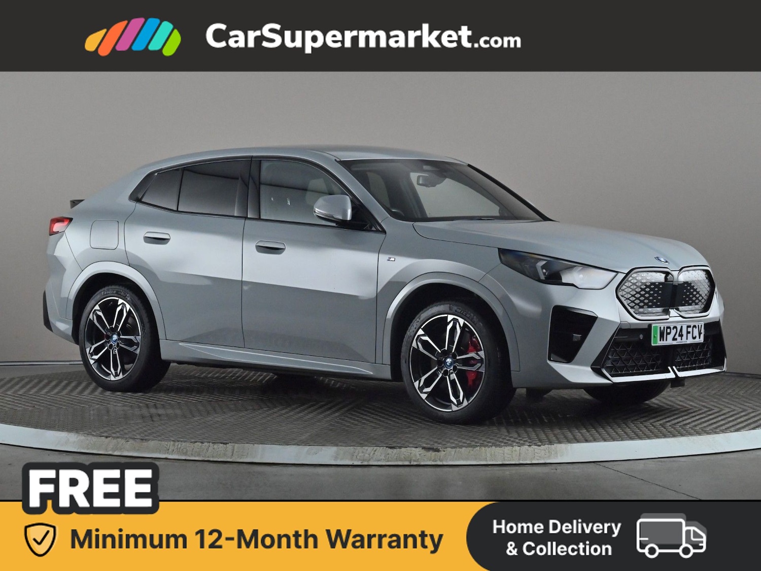 Insurance Group 38, 0 Previous Owners, BMW iX2 xDrive30 M Sport 65kWh Auto (Grey) A premium electric SUV offering strong performance with a highquality interior and advanced technology. Includes BMW Live Cockpit and digital radio. Optional extras include AC Charging Professional, AlcantaraVeganza interior in black with blue stitching, Brooklyn Grey paint, M Sport brakes with red calipers, model designation deletion, sun protection glazing, and Technology Package (£3,485). Minimum 12month warranty. MOT due 08/05/2027.