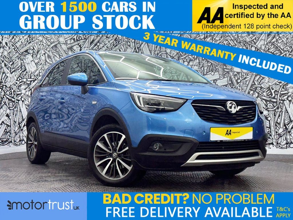 BuryInsurance Group 18, 1 Previous Owner, Boasting exceptionally low mileage for its age, this 2020 Vauxhall Crossland X Turbo Elite Nav presents a superb ownership prospect. This Euro 6 compliant, 1.2 litre petrol model is finished in the desirable Elite Nav trim and benefits from an MOT valid until January 2027. Its impressive specification includes a front camera system with parking assistance, rear parking distance sensors, electronic climate control with air conditioning, and LED headlamps. The Sight and Light Pack further enhances convenience with automatic headlamp activation, ensuring you are always prepared for changing conditions. This Vauxhall Crossland X offers a compelling blend of efficiency and performance, achieving 060mph in just 9.5 seconds. Its fuel economy is a notable highlight, returning up to 44 miles per gallon, which, combined with its low CO2 emissions and low insurance group rating, indicates it is more economical to run than many comparable vehicles. With only 11288 miles on the clock, this Crossland X represents excellent value for those seeking a well equipped and efficient compact SUV. Welcome to MotorTrustUK, where exceptional standards and customer satisfaction are at the forefront of our service. All of our retail vehicles undergo a rigorous 128point mechanical inspection, independently carried out by a qualified AA technician, to ensure the highest level of reliability and safety. Should any vehicle have less than six months remaining on its MOT or be due a service, these requirements will be addressed prior to delivery. For added reassurance, we include a complimentary nationwide warranty with all qualifying vehicles. With approximately 1,500 vehicles currently in group stock, a number that continues to grow, we are pleased to offer part exchange services, accept all major credit and debit cards, and provide flexible finance options, including HP, PCP, and subprime solutions. Nationwide delivery can also be arranged by quotation. While every effort is made to ensure accuracy in vehicle specifications and descriptions, details may vary; we encourage all customers to speak with a member of our sales team to confirm key information such as MPG figures, available keys, or any factory modifications. To ensure smooth processing and support, an administrative fee is applied to all completed sales. We look forward to assisting you in finding your next vehicle with confidence at MotorTrustUK. .Florey Fabric Black, Persian Blue, 16in Steel Emergency Spare Wheel, 12V Electrical Accessory Socket, 17in Alloy Wheels DiamondCut Technical Grey MultiSpoke, ABS AntiLock Braking System, Airbags Front Seat SideImpact, Alloy Effect Protective Front and Rear Skid Plates, Ambient Facia Centre Console Downlighter, Ambient LED Lighting in Front Doors Facia and Gear Shift Surround, AntiSubmarining Ramps in Front Seats, Automatic Lighting Control, Black Door Panels with Medium Grey Premium LeatherEffect Inserts, Body Colour Roof and Door Mirrors, Body Coloured Door Handles, CSC Corner Stability Control, Central Facia Display, Child Proof Locks on Rear Doors, Chrome Effect Front Grille Bar, Chrome Effect Interior Door Handles, Chrome Effect Side Window Trim, Collapsible Windscreen Wiper System, Comfort Front Seats, Cruise Control with Speed Limiter and Intelligent Speed Adaptation, Dark Tinted Rear Windows, Deactivation Switch For Front Passengers Front and Side Impact Airbags, Deflation Detection System, Deformation Zones Front and Rear, DoortoDoor Illumination, Driver Information Display, Drivers and Front Passengers Airbags with ActiveVent Technology, Dual Seatbelt Pretensioners on Front Seats, EBD Electronic Brakeforce Distribution, Electrically Operated Front and Rear Windows with Safety Autoreverse and OneTouch Facility, Electronic Climate Control including Air Conditioning, Electronically Protected Audio Equipment, Energy Absorbing Steering Column, Engine Deadlock Immobiliser, Engine Drag Torque Control, Four Adjustable Facia Vents, Front Camera System, Front Door Pockets with 1.5Litre Bottle Holder, Front Fog Lights, Front Map Reading Lights, Front and Rear Passengers Assist Handles, Fuel Gauge with Low Fuel Warning Light, Full Size Curtain Airbags for Driver Front Passenger and Outer Rear Seat Passengers, Fully Carpeted Luggage Area, Glovebox with Lid, Hazard Warning Lights, Heated Rear Screen with Timed CutOff, Heated Rear Window, HeightAdjustable Front Seat Head Restraints, HeightAdjustable Head Restraints on Outer Rear Seats, HighLevel LED Centre Rear Brake Light, Hill Start Assist, Hydraulic Brake Assist, Hydraulic Brake Boost, ISOFIX Child Seat Mountings Incorporating Top Tether Anchor Points Located on Outer Rear Seats, Illuminated Luggage Area, InertiaReel Lap and Diagonal Seatbelts, Infotainment Surround Piano Black, Interior Courtesy Light Operated By Door Switches, Intermittent Rear Window Wipers with Washer,