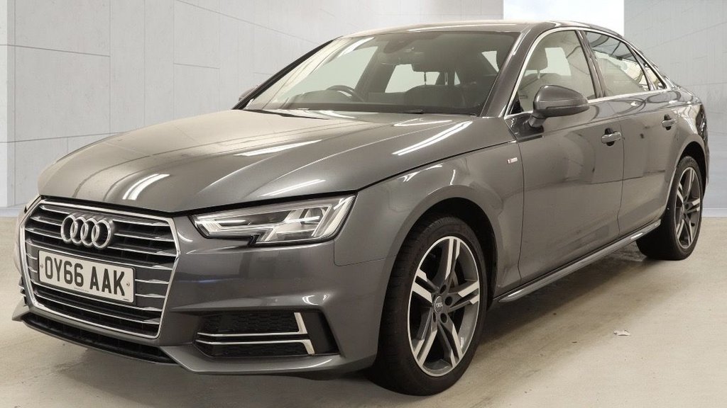 1 Previous Owner, 6 SERVICE STAMPS LAST 69719 .. ., 18in Alloy Wheels 5TwinSpoke Star Design, 4Way Electric Lumbar Support for Front Seats, 6Airbag System, Anti Theft Locking Wheel Bolts, AntiTheft Alarm, Audi Connect 3 Month Trial, Audi Drive Select, Audi Smartphone Interface, Audi Sound System, AutoDimming RearView Mirror, Bluetooth Interface, Body Coloured Door Mirrors, ChromePlated Trims for Exhaust System, Cloth Headlining in Black, Cruise Control with Speed Limiter, DAB Digital Radio, Deluxe 3Zone Electronic Climate Control, Door Mirrors Electrically Adjustable and Heated with Builtin LED Indicators, Drivers Information System 5in Monochrome Display, ESC Electronic Stabilisation Control inc ABS ASR and EDL, Electric Boot Lid Release, Electric Windows Front and Rear, Electromechanical Parking Brake, Electromechanical Power Steering, First Aid Kit and Warning Triangle, Front and Rear Floor Mats, Gear Lever Knob in Black Perforated Leather, High Gloss Package, ISOFIX Child Seat Mounting and Top Tether, Illuminated Door Sill Trims with S Logo, Inlays Matt Brushed Aluminium, Keyless Go, LED Headlights with LED Rear Lights and Dynamic Rear Indicators, LED Interior Light Pack, Light and Rain Sensors, Luggage Compartment Mat, MMI Navigation SD Card Based, Manual Height Adjustment for Front Seats, Model and Engine Technology Badges at Rear, Multi Collision Brake Assist, NonSmoking Package, Parking System Plus, Pedals and Footrest Stainless Steel, PopUp Bonnet for Pedestrian Protection, PreSense City, Radiator Grille Twilight Grey Matt with Inlays in Chrome, Rear Diffuser in Twilight Grey Matt, Rear Grille Black Grained, Remote Central Locking, S Line 3Spoke Leather Multifunction Sport Steering Wheel Grips in Perforated Leather, S Line Badges on Front Wings, S line Front and Rear Bumpers and Side Skirts, Seat Belt Monitoring, Side Air Inlet Grille in Titan Black Matt with Chrome Inlays in Unique S Line Design, Space Saver Spare Wheel, SplitFolding Rear Seat Bench in 3 Parts 402040 with Rear Centre Armrest, Sport Suspension, Sun Visors with Vanity Mirror, Tool Kit and Jack, Towbar Preparation, Tyre Pressure Warning Light, Variable Restraint System, Windscreen with Acoustic Glazing