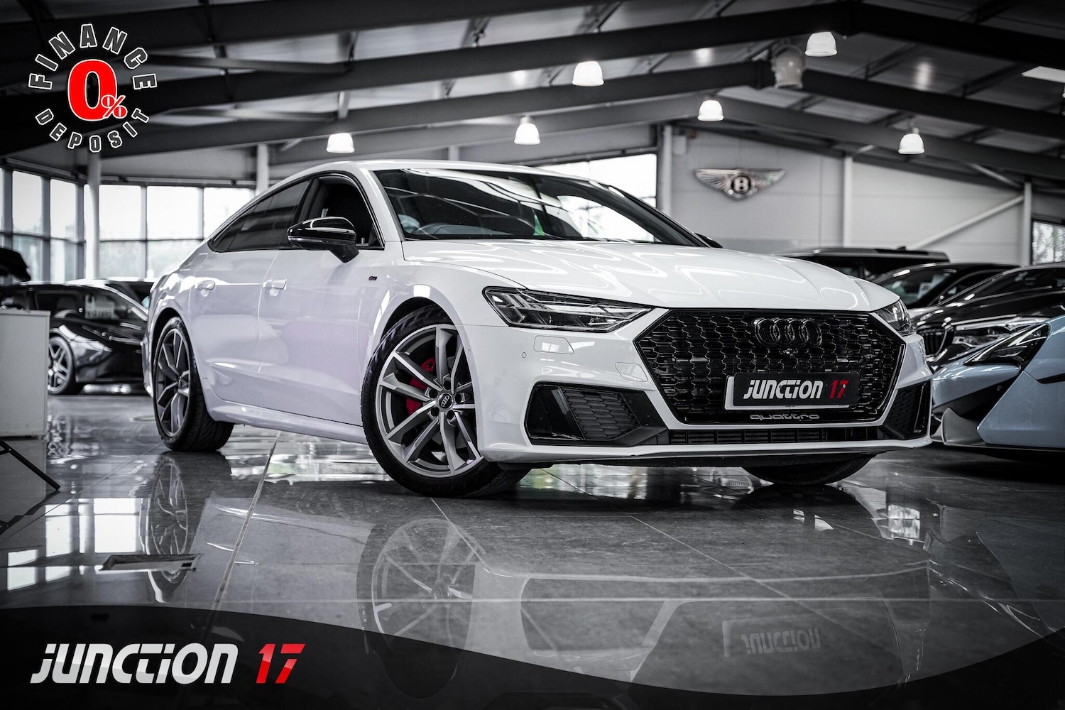 2 Previous Owners, *CLICK BUY COLLECT* FINANCE AVAILABLE! HPI CLEAR! Junction 17 Cars now have to offer a stunning Audi A7 2.0 TFSI 45 Black Edition Sportback S Tronic quattro (s/s) 5dr.. Audi service history with 5x records present.. Finished in Glacier White with Black half leather upholstery.. Desirable specification with several sought after features, such as.. Comfort and Sound package.. Bang & Olufsen premium sound system.. 360 Surround camera parking aid.. Satellite navigation.. Apple carplay.. Heated front seats.. Electric adjust front seats with driver memory, and more.*WE WILL BEAT ANY CAR VALUATION SITE FOR YOUR PART EXCHANGE* Junction 17 Cars (Runner Up at the Motor Trader Independent Dealer Awards 2019 nominated for Car Supermarket of the Year Award) is a unique family run business with over £7 millions worth of stock currently split over our purposebuilt showroom in Yaxley, Peterborough and our new showrooms in Grantham and Rugby. Our vehicles can also be reserved with a £99 refundable holding deposit to ensure that they are professionally prepared/valeted for your viewing pleasure. Competitive HP and PCP packages are available with decision/approval available within 15 minutes. We also offer comprehensive warranties over a variety of different terms as well as Williams Ceramic Coating, Flexfuel Engine Carbon Cleaning and more. **NATIONWIDE DELIVERY AVAILABLE** Payment : maximum £500 card payment balance by bank transfer