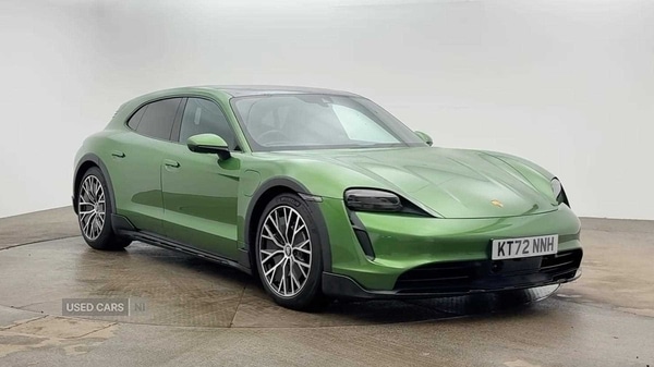 County Down0 Previous Owners, Porsche Taycan 350kW 4 93kWh 5dr Auto Optional Spec includes GREEN, Deletion of Model Designation, Porsche Crest on headrests (front), Adaptive Cruise Control, Privacy glass, Ambient lighting, ParkAssist including Surround View, Sport Chrono Package incl. mode switch, Electric folding exterior mirrors, Panoramic roof, fixed, Porsche Electric Sport Sound, 20Inch Taycan Turbo S design wheels painted in Satin Black, Offroad Design Package in Black