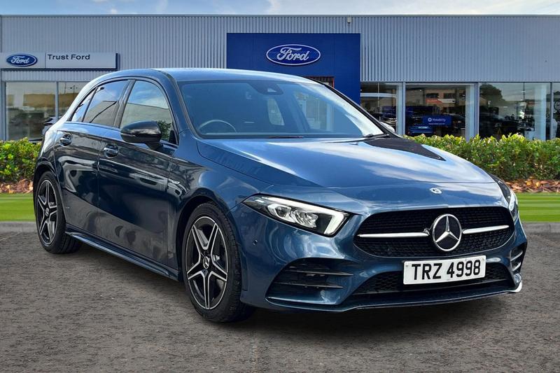 Insurance Group 19, 10.25 media display, 180 degree rear view camera with parking guidelines, 7 colour screen in instrument panel, Active parking assist with visual and audible warning of detected obstacles, Attention assist, Brake pad wear indicator warning light, Car wash mode, Cruise control + speed limiter, Direct steering, Dual bluetooth interfaces, DYNAMIC SELECT with a choice of driving modes (ECO, Comfort, Sport and Individual), ECO start/stop function, Fluid level warning indicator for fuel, oil, coolant and washer fluid, Harddisk navigation, Hey Mercedes Voice activation, Lamp failure indicator, Lane keeping system, Mercedes me connect including emergency call system, accident recovery, breakdown and maintenance management, Mercedes me remote services, Outside temperature gauge, Owners manual in English, Preinstallation for private car sharing, Preinstallation for Mercedes Benz link, Service indicator (ASSYST), Smartphone integration with Apple CarPlay and Android auto, Speed sensitive power steering, Trip computer, Ultrasonic sensors positioned in the front and rear bumpers, 4 Electric Front and Rear windows, Adaptive brake lights, AMG bodystyling Front apron with splitter in chrome, rear apron with chrome trim and chrome visible trim elements in tailpipe, Automatic headlights, Black weather strip, Body colour bumpers, Body colour door handles, Body colour side skirt, Body coloured door mirrors, Electric adjustable and heated door mirrors with integrated LED side indicators,