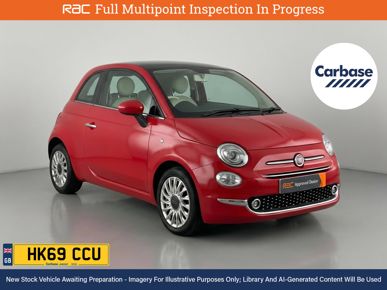 RAC MultiPoint Inspection at 26k Miles And Fiat Dealer Service History (4 Stamps Last At 25k) Experience An Icon Remastered, Discover The New Perspective InStore With A Test Drive Of The Fiat 500. Finished In £750 Pasodoble Red Special Pastel Paint As You Step Inside You Will Find A Variety Of Technologies, Including Apple CarPlay, Android Auto, Rear Radar Type Parking Sensors, Cruise Control. Keep Everyone Onboard Entertained Thanks To Features Such As Voice Control For Media Functions, Bluetooth Wireless SmartPhone Connectivity, DAB Digital Radio For A Myriad Of Stations To Suit Your Mood. Enhance Your Comfort Thanks To Air Conditioning, Isofix, Front Electric Windows. Also Fitted With Front Fog Lights, Engine Start/Stop Fuel Saving Technology, Electric Hill Holder, Tyre Pressure Monitoring System., Date Of First Registration October 2019. Drive Into A Low Emissions Zone With This Euro 6, ULEZ & CAZ Compliant Car Were an RAC Approved Dealer Where All Vehicles Come With a Full Multipoint Check and Warranty. At Carbase, We Have 3 Car Stores Across Bristol and Somerset, Open Daily. Thinking of Selling Yours We Want Your Car Quick and Easy, Trade In or Sell. Personalised Finance Deals for All ESign and Drive Away the Same Day! With Thousands to Choose From, Find Your Next Car or Van With Carbase. A Fully Refundable £99 Reservation Holds Any Vehicle for 3 Days. InStore Deposits Up to £250 Can Be Paid Through Debit or Credit Card. All Balance Payments Are via...