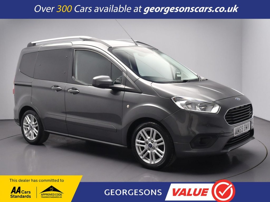 LiverpoolThe Ford Tourneo Courier 1.0 EcoBoost Titanium combines a responsive 1.0litre turbo petrol engine with 125hp, delivering 062mph in 11.8 seconds and up to 48.7mpg in this frontwheeldrive setup with a precise 6speed manual transmission. The Titanium trim offers premium family practicality with 16inch alloy wheels and a spacious, versatile interior designed for up to five passengers with flexible seating. Navigate effortlessly with integrated satellite navigation, Apple CarPlay, Bluetooth and DAB radio, ensuring seamless connectivity on every journey. Parking is a breeze thanks to the reverse camera and parking sensors, providing clear visibility and confidence in tight spaces. Stay comfortable with heated seats and climate control, offering personalised cooling yearround. Cruise control with speed limiter enhances relaxation on motorways The practical fivedoor MPV design includes a generous boot with flexible load space for everyday family versatility Georgesons Cars, one of the leading used car dealerships near me, has been serving Liverpool and the wider Merseyside area since 1955. As a thirdgeneration familyrun business, we offer a wide variety of cars for sale, including over 300 quality used cars in Liverpool. Whether youre searching for cars for sale in Liverpool or reliable auto used cars, our inventory is pricechecked daily, ensuring competitive pricing. Rated 5stars on TrustPilot, Georgesons Cars proudly upholds the AA dealer promise and Chartered Trading Standards approval. Contact us today to explore our full range of cars for sale and let our team help you find your next car!.12V Power Socket Front, 16in Alloy Wheels, ABS Antilock Braking System, Adjustable Rear Package Tray, Airbag Front Side and Curtain Airbags, Airbags Driver and Front Passenger, Automatic Rain Sensing Wipers, BeltMinder Rear Seat, Body Colour Rear Bumper, Bodyside Mouldings Body Colour, Bumper Front Body Colour Full, Cargo TieDowns DIN 75410 Compliant, Carpet Front with Drivers Side Heel Protection, Carpet Rear, Centre Console with 2 Cup Holders and A4 Size Stowage, Centre Mounted Brake Light, Chrome Surround Grille, Courtesy Light Front with Two Map Lights, Courtesy Light Load Compartment, Courtesy Light Rear Switch, Cruise Control with Adjustable Speed Limiter, Daytime Running Lamps, Door Handles Body Colour, Door Levers BrightFinish, Door Mirrors Electrically Operated and Heated Body Coloured, Driver and Passenger Belt Minder, Drivers Armrest and Lumbar Support, Dual Sliding Rear Doors, EBA Emergency Brake Assist, Electric Windows Front, Electrochromic Inside Mirror, Electronic Automatic Temperature Control EATC, Electronic Stability Programme ESP with Hill Start Assist, Emergency Brake Warning, Engine Immobiliser, EPAS Electric Power Assisted Steering, Ford Easy Fuel System, Front and Rear Folding Grab Handles, Front Fog Lights, Front Seat 2way Manual Passenger Seat ForeAftRecline, Front Throw in Carpet Floor Mats, Gear Knob Leather, Glazed Liftgate Heated with WashWipe, Glove Box with Lid, Headlights Automatic, Headlights Courtesy Delay, Headlights Twin Chamber Halogen Reflector Headlights, ICE Pack 36 SYNC 3 with 6in Colour Touch Screen and DAB Radio, Internal Push Lock Feature on Second Row Opening Windows, Manual Drivers Seat Height Adjustment, My Ford Dock, Overhead Stowage, Passenger Underseat Drawer, Pollen Filter, Power Steering, Privacy Glass, Quickclear Heated Front Windscreen with Heated Washer Jets, Rear Bumper End Caps Body Colour, Rear Seat Fold and Tumble Split All Fixed, Recirculation Filter, Remote Central Door Locking with Deadlocks, Roof Rails Bright Finish, Seat Belts 3Point PreTensioners for Driver and Passenger Seats, Seats ISOFIX Mounting Provision for Child Seats, Side Load Door Child Locks, Side Load Door Track Cover, Speakers x4, Steering Column Rake and Reach Adjustment, Steering Wheel LeatherTrimmed, Submarine Lighting Interior with Glove Box Illumination, Tachometer, Tinted Glass, Tray Tables 2nd Row, TripFuel Computer, Tyre Pressu