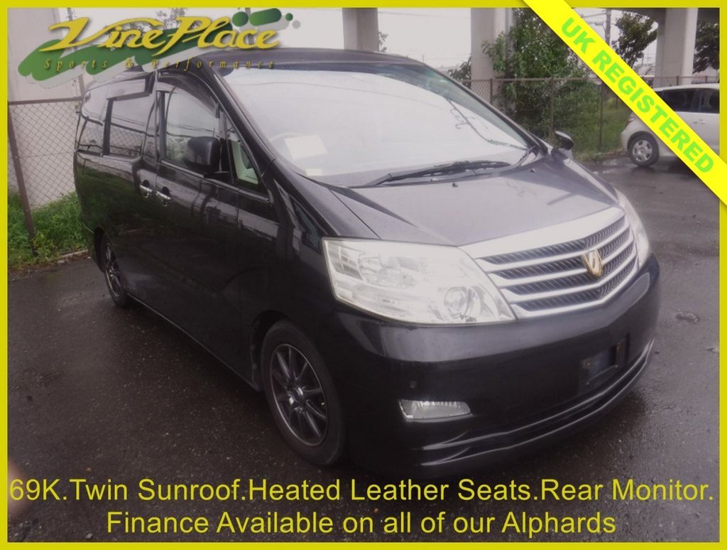0 Previous Owners, The MZ is near the top of the range Alphard. It has 7 seats rather than the usual 8, with polished wood cocktail table between the front and middle seats. Finished in beautiful Pearlescent white it has full cream leather heated electrically adjustable seats. Specification on this model is superb with, cruise control, power slide doors, power tailgate, folding mirrors, DVD, independent front and rear air conditioning, adjustable suspension, privacy glass, wind deflectors, rear spoiler, ISOFIX, aerokit, front and rear parking sensors, rear wash, retractable mirrors and traction control, XENONs, reverse camera, ambient lighting and driver information centre The car has covered 69000 miles and is supplied with a BIMTA mileage certificate. We update our Alphards to be Bluetooth phone compatible with music streaming capability. You can reserve it today with a deposit of £500. Service,MOT,MPH Speedo,Underseal,Fog Light and a 3 month warranty, extendable for the duration of your ownership are all included. This car is suitable for use with E10 petrol. Vine Place started importing vehicles from Japan in 1997 and have imported numerous makes and models. Along with the Elgrand the Toyota Alphard is one of our alltime favourites. It combines great practicality with good looks, comfort, and bullet proof reliability. As well as having Toyota Alphard’s for sale, as a leading UK Toyota Alphard dealer we provide service and repair to all of our Toyota Alphard customers. Official Japanese Fuel Consumption for the 3.0 is 8.9 km/l (25.1MPG) and the 2008 2.4 is 27.2MPG while the 3.5 is 9.5km/L(26.84MPG) 1457.