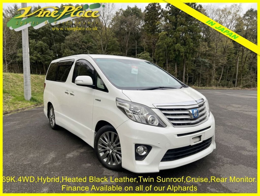 1 Previous Owner, 2013 Toyota Vellfire 2.4 Hybrid SRC Executive Seat Package 4WD 69,000 Miles BIMTA Warranted Pearl White HighSpec ZR Edition With petrol prices on the rise the Alphard Hybrid is an ever increasingly sought after package. The SRC Executive seat car is equipped with luxury leather electric seats with power front and middle seats, twin sunroofs and DVD with rear screen for back seat passengers. It has covered 69K miles and has a BIMTA certificate. Key Vehicle Highlights The EFour Hybrid Drivetrain: Combines the 2.4L engine with Toyotas intelligent 4WD system, providing exceptional fuel economy in the city and total traction when the weather turns. SRC Features: Fully equipped and in lovely condition. BIMTA Verified Mileage: Only 69,000 miles from new, fully warranted with a BIMTA Mileage Certificate—the gold standard for Japanese import transparency. Clean Air Technology: Equipped with the factory Nanoe™ air purification system, ensuring the cabin environment is as fresh as it was the day it left the factory. ULEZ & CAZ Compliant: UltraLow Emission Zone compliant, offering a futureproof solution for city driving without the premium tax brackets. Executive Interior & Innovation FirstClass Ottomans: Both the front passenger and the middlerow lounge seats feature integrated Ottoman leg rests. 1500W Mobile Power: Rare factoryfitted 1500W A/C outlets, allowing you to power household appliances, laptops, or camping equipment directly from the hybrid battery. Complete Power Suite: Equipped with dual electric sliding doors and a Power Tailgate for total convenience at the touch of a button. Driver Precision: Featuring a Power Drivers Seat with Memory Function, Cruise Control, and a highdefinition colour reverse camera with integrated parking sensors. The Vine Place Advantage Sourcing the finest Japanese imports since 1997, we ensure every Vellfire is prepared to our exacting standards. Chassis Protection: Professionally undersealed with Bodyshutz to protect against UK road salt. Technical Readiness: Supplied with a comprehensive service, fresh MOT (no advisories), and all factory recalls completed. Turnkey Ready: This vehicle is prepared for immediate.