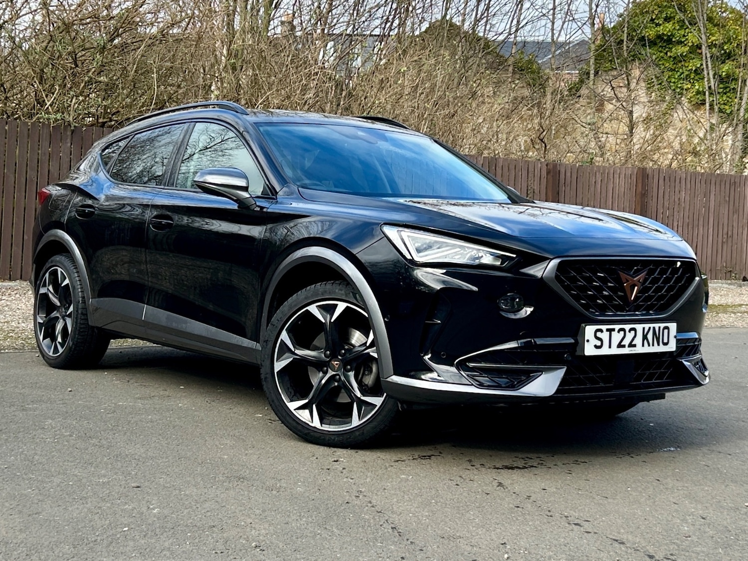 KirkcaldyInsurance Group 19, 0 Previous Owners, Digital cockpit and configurable dashboard, Driver alert system, Driving profile selection, Ecall, Forward collision warning with automatic braking, Lane assist, Park assist (inc front/rear parking sensors), PAS, Predictive adaptive cruise control with speed limiter, Rear view camera, RPM, trip computer, outside temp gauge, instrument light brightness, low fuel warning light, lights on reminder, gearshift indicator, Service interval indicator, Start/stop system with regenerative braking, Wireless apple carplay, Wireless phone charger, Electronic locking differential and dynamic traction support, Standard suspension, 2 front and 2 rear USB type C sockets, Auxiliary input socket, DAB radio, Auto dimming rear view mirror, Body colour door handles, Body coloured bumpers, Dark grey wing mirror, Daytime running light with automatic headlight control and coming home feature, Dynamic headlight range control, Electric front/rear windows, Electrically adjustable heated and folding door mirrors with memory function, Front fog lamps with cornering function, Gloss black roof rails and window surrounds, LED Headlights, LED Taillights with dynamic indicator, Rain sensing wipers, Rear diffuser with black simulated exhaust pipes, Rear side wing doors, Rear wash/wipe, Third brake light, Tinted rear windows, Welcome lights, 12v power supply in centre console, 12V socket, 12v socket in loadspace, 2 front and 2 rear reading lights, 230V socket, 3 seat bench in 2nd row, 60/40 split rear bench seat with armrest and mechanical seat release, Dust/pollen filter, Front and rear head restraints, Front centre armrest, Height/reach adjust steering wheel, Illuminated interior front door sills, Illuminated sunvisor with mirror, Isofix, Leather multi function steering wheel, Luggage tiedown hooks, Single front passenger seat, Three zone climate control with control panel in rear, Variable luggage/load compartment floor, Wraparound lighting, Genuine Nappa leather Pack Cupra, Navigation system pack with 10" navigation system Formentor, Safety and driving pack (M) Formentor, 3 point seatbelts on all rear seats, ABS, Brake control system ESC and brake booster, Child proof door locks, Driver and front passenger airbags with front passenger airbag deactivation, Electronic parking brake, Front and rear disc brakes, Front side curtain airbags, Hill hold control, Seat belt reminder for front and rear seats, Tyre pressure monitoring system, Anti theft alarm system, Keyless entry and