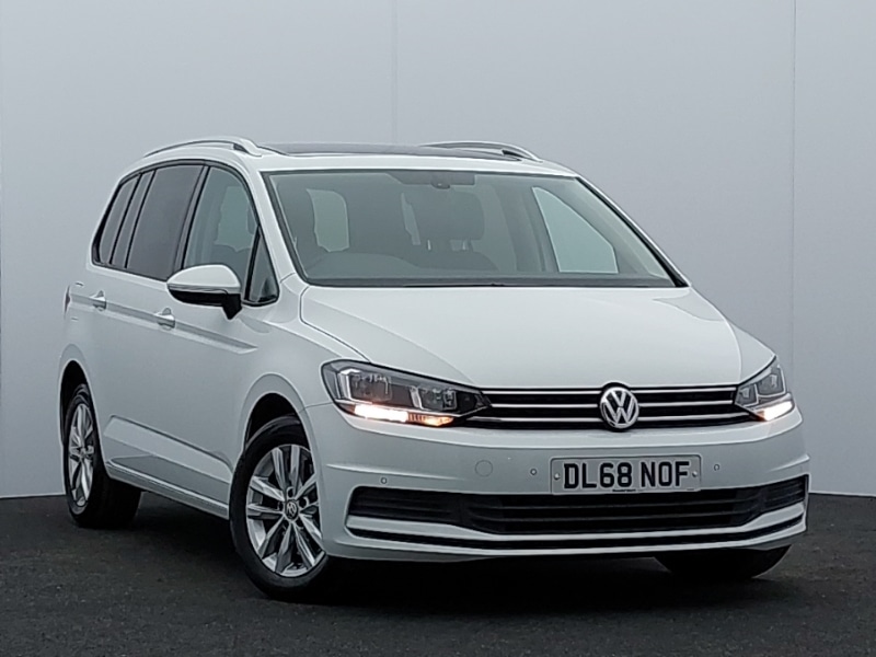 EdinburghInsurance Group 12, Family Pack Touran, Driver electronic voice amplification function, Car information display, Mobile pairing with SMS function, Multi function computer, Multi function display, Speed sensitive power steering, Stop/start system, Think blue trainer driver tips and journey analysis, Trip and service interval display, XDS electronic differential lock, Diesel particulate filter, SD card slot, Multi device interface, DAB Digital radio, Audio Connectivity System, 4x20 watt output, Electric heated + adjustable door mirrors, Dusk sensor + auto driving lights, Daytime running lights, Automatic coming/leaving home lighting function, Auto dimming rear view mirror/rain sensor, Gloss black finish B pillar, Green tinted heat insulating glass, Range adjustable headlights, Rear tinted glass from Bpillar backwards approx 65% tinted, Rear wash/wipe with intermittent wipe setting, Silver roof rails, Tailgate wiper reverse gear activation, 3 spoke steering wheel, 3 single slide/fold/removable 2nd row seats, 2nd row centre seat converts into table, 2nd row centre armrest, 4 way driver/front passenger adjustable head restraints, 5 headrests, Foldable front passenger seat backrest, Front and rear reading lights, Front centre armrest with storage compartment, Front passenger seat height adjust, Front seat storage pockets, Front seatback folding tables, Instrument lighting white adjustable panel illumination with red night time illumination, Illuminated vanity mirrors, Luggage compartment lighting, Media box in dashboard on passenger side, Multi storage in passenger/luggage areas