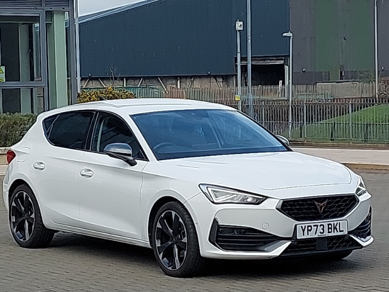 GreenockInsurance Group 20, Full link smartphone integration with Mirror Link, wireless Apple CarPlay and wired Google Android Auto, Wireless phone charger, Media system plus with navigation pack Leon Cupra, CUPRA drive profile selection with (Comfort/Sport/Individual), throttle response and gearshift mode, Safety and driving pack (M) Cupra leon, Front assist with forward collision warning braking reaction to vehicles, pedestrians and cyclists, Park assist (inc front/rear parking sensors), Rear view camera, KESSY Advanced Keyless start, keyless entry, LED headlights with dynamic turn signals, tail lights, rear fog lights with rear coast to coast lighting, Separate daytime running light with automatic headlight control and coming home feature, Rain sensing wipers, Auto dimming rear view mirror, Three zone climate control, Sports seats, 18" Machined sport black and silver alloy wheels with 92Y tyres, Cupra black brake calipers