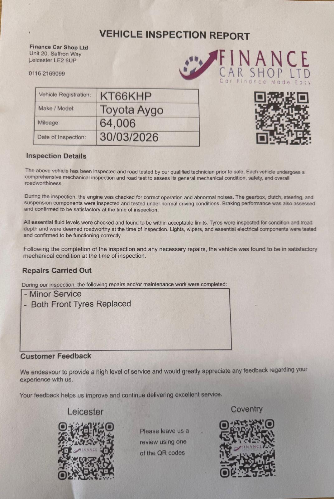 Insurance Group 7, 1 Previous Owner, FULL SERVICE HISTORY This Toyota Aygo 1.0 VVTi xplay is a stylish and reliable city car with very low running costs. Its compact size makes it easy to drive and park, while the efficient petrol engine delivers excellent fuel economy. Perfect for firsttime drivers, commuters, or anyone looking for a practical small car.Key Features:1.0L VVTi Petrol Engine Economical and reliableEuro 6 compliant ULEZ friendly5 Door Hatchback Practical and easy accessAir ConditioningDAB digital radioUSB connectivityElectric front windowsRemote central lockingSafety & Convenience:ABS braking systemVehicle Stability ControlMultiple airbagsWhy this car?Cheap to insure and runExcellent fuel economyReliable Toyota engineeringIdeal first car or city runaround+ 6 MONTHS WARRANTY INCLUDED + 6 MONTHS BREAKDOWN COVER + EXTENDED WARRANTY AVAILABLE + FINANCE OPTIONS AVAILABLE UPON REQUEST + DELIVERY CAN ONLY BE ARRANGED ONCE THE VEHICLE HAS BEEN VIEWED & INSPECTED IN PERSON AT OUR PREMISES + PHOTO ID IS REQUIRED FOR ALL VIEWINGS AND TEST DRIVES + WE CAN BE REACHED VIA WHATSAPP ON 07458 300017 FEEL FREE TO MESSAGE US + PLEASE NOTE, THE PRICE IS FIXED ON THIS VEHICLE. KINDLY BE AWARE OF THIS PRIOR TO ARRANGING A VIEWING + WE HAVE OVER 50 VEHICLES IN STOCK. AS NOT ALL VEHICLES ARE HELD ON SITE, PLEASE ENSURE YOU CALL IN ADVANCE BEFORE MAKING YOUR JOURNEY + BANK TRANSFER ONLY + MORE CARS AVAILABLE AT:WWW.FINANCECARSHOPLTD.CO.UK +