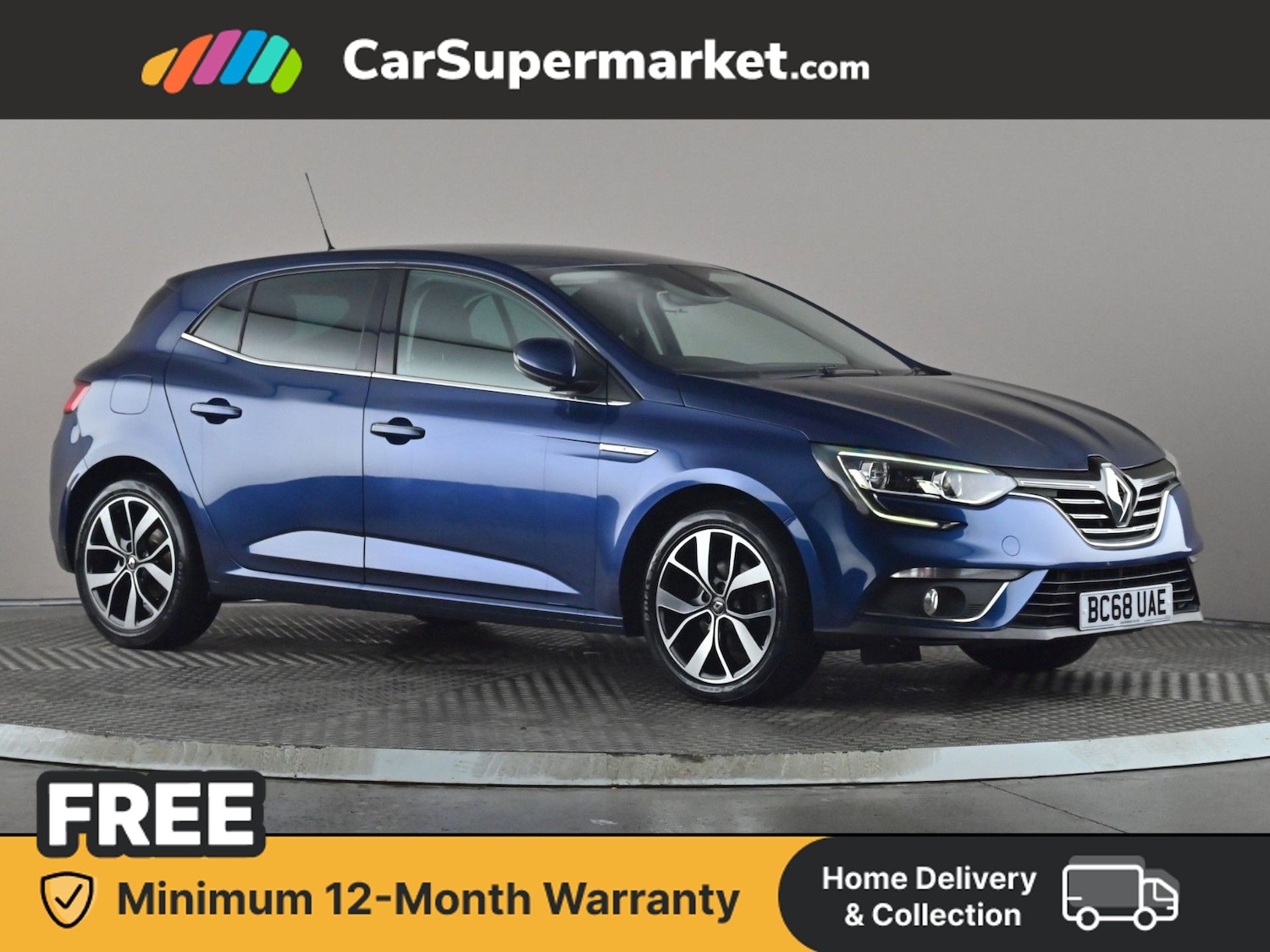 Insurance Group 18, This Renault Megane Iconic is finished in Cosmos Blue and offers a comfortable and wellequipped driving experience. It includes cruise control, Apple CarPlay, Android Auto, traffic sign recognition, lane departure warning, Bluetooth connectivity and digital radio. Optional extras include metallic paint, emergency spare wheel and upgraded interior trim, with a total options cost of £760. Supplied with a minimum 12month warranty. Last serviced on 05/01/2026.