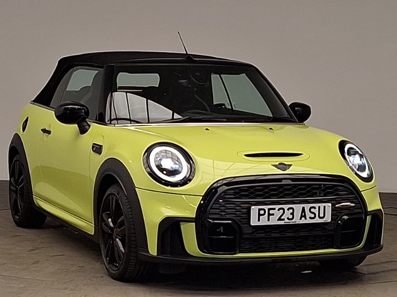 LeylandInsurance Group 28, Adaptive cruise control, Compatible mobile phone bluetooth with audio streaming, John Cooper Works aerodynamic kit front and rear bumpers with sporty JCW styling and part painted side sills includes MINI JCW door sill finishers, Mini Ecall, MINI TeleServices, Automatic start/stop function with brake energy recuperation, Apple CarPlay, FM tuner and DAB digital radio, 8.8" touchscreen with LED ring, Automatic headlight activation switch, Fully electric black softtop with integrated sunroof functionality, LED headlight with closed ring and daytime driving lights, Sun/heat protection glass, Rain sensor window wipers, Chrome interior highlights, LED reading lights, vanity mirror lights, front foot well light and spotlight on front seats, Walknappa leather steering wheel with grey seam with John Cooper Works badge on piano black lower steering wheel spoke, Convertible pack with comfort access Mini Convertible, Piano black exterior pack Mini Convertible Cooper S, Premium pack with Driving Assistant Mini Convertible, Interior lighting with 12 different colours running across the dashboard, underneath door bezel illuminated laser engraved design on central display, Hill start assist