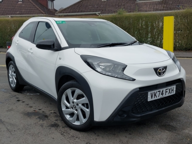 GlasgowInsurance Group 5, Smart phone integration with Apple car play/Android Auto, Reversing camera with static guide lines, Bluetooth connectivity, 4.2" TFT colour screen, Adjustable speed limiter, Speed limit display, 9" HD multimedia display touch screen with Toyota smart connect, DAB digital audio broadcast, USB connector, Automatic headlights cutoff, Follow me home headlights, LED daytime running lights, Rain sensor, LED front light guide, Auto headlights, 3 spoke leather steering wheel, Adjustable speed limiter switch on steering wheel, Audio and telephone switches on steering wheel, Height adjustable driver seat, ISOFIX child restraint system on rear seats, Intelligent adaptive cruise control switch on steering wheel, Manual air conditioning, Manual tilt steering wheel, Voice recognition switch on steering wheel, Toyota safety sense pack Aygo X, Hill start assist control (HAC)