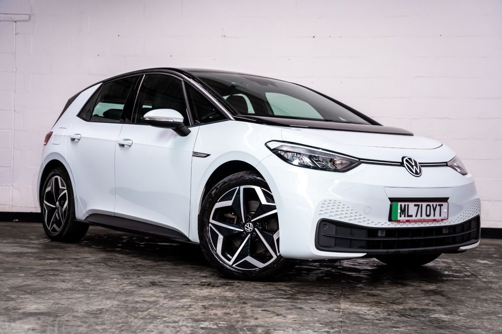 Wigan0 Previous Owners, Stunning Glacier White With Black Roof, Heated Front Seats, Sat Nav, Apple/Android Car Play, Reverse Parking Camera With Front & Rear Parking Sensors, Upgraded 19 Alloy Wheels With Continental Tyres All Round, Full 12 Month Mot, Adaptive Cruise Control, Bluetooth In Car Entertainment, Electric Adjustable Door Mirrors, Auto Headlights, Air Conditioning, Euro 6, Vat Qualifying Car Wigan Vehicle Solutions are a family Run Company with 20 Plus years experience in the motor Trade. We Hand Pick all our Vehicles to ensure quality and customer satisfaction. We specialise in Home Delivery which allows you to have peace of mind when buying your vehicle as we always go the extra mile to ensure that your vehicle fits your exact needs. We ensure that all our vehicles are valeted and have a pre delivery inspection. As we aim to make your buying experience as smooth as possible, we will pick up your part exchange which will save you time and money. We offer a range of services like Finance, Home Delivery and Part Exchange so you dont have to spend your hardearned time and money finding that elsewhere. Our reviews and feedback tell us that our customers love the way we do business, so if you want to purchase online, or the comfort of our showroom WVS is the retailer to take care of your next car needs..19in Alloy Wheels Andoya, Glacier White with Black Roof, 1Zone Climatronic, 10in Infotainment System, 18in Steel Wheels Aero, ABS AntiLock Braking System, Adaptive Cruise Control ACC including Front Assist Radar Sensor Controlled Distance Monitoring System City Emergency Braking System Cruise Control and Speed Limiter, Airbag Front Centre, Airbags Curtain Front, Airbags Driver, Airbags Front Side, Airbags Passenger, AllLED Headlights with Reflector Technology, Armrest Integrated into Front Seats, Black Roof, Body Coloured Bumpers Door Handles and Door Mirrors with Integrated Indicators, Car2X Technology, Comfort Package, DAB Digital Radio, Digital Dashboard, Driver Alert System, Electric Windows Front and Rear, Electronic Parking Brake with Auto Hold Function, Exterior ESound, Free WeConnect Start for First 3 Years, Heated Rear Window, ID Light, Infotainment Package, Interior Alarm, Interior Ambient Lighting 10 Colours, Lane Assist, Mode 3 32AMP 7.2kW Charging Cable for Charging at Public Charge Points, NCAP Pack Forward Collision Warning Extended and Proactive Pedestrian Protection, Natural Voice Control, Parking Sensors Front and Rear, Power Assisted Steering Speed Sensitive, Remote Tailgate Unlocking, Security and Service SOS Buttons, Special WeCharge Conditions for ID 3 Customers within First 3 Years, Tool Kit with Tyre Mobility Kit, We Connect ID App, Wireless App Connect