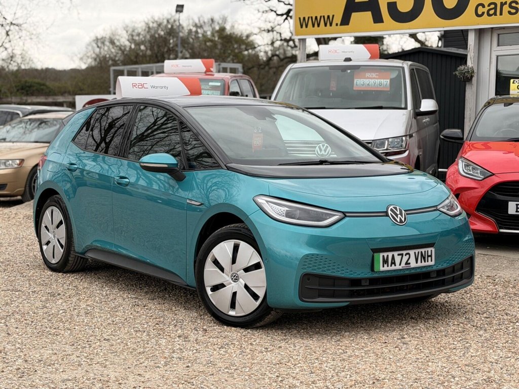 HookInsurance Group 29, 0 Previous Owners, This 2022 Volkswagen ID.3 Pro Performance Family is a standout example, having covered a remarkably low 7634 miles from its single owner. As an electric vehicle, it offers a compelling blend of modern technology and practicality. The ID.3 Pro Performance Family variant, in its Family trim, boasts a 62 kWh battery with a maximum range of 257 miles when new, and a full charge at home using a 7kW charger takes approximately 9 hours and 30 minutes. For quicker top ups, it can reach 80% charge in just 37 minutes at a compatible public charging station. This particular ID.3 comes equipped with a host of desirable features that enhance comfort and convenience. The Comfort Package Plus includes heated seats, a heated steering wheel, and climate control, while the Assistance Pack adds keyless entry and a rear parking camera. Front and rear parking sensors further aid manoeuvrability. Driving is made easier with Adaptive Cruise Control, which includes a distance monitoring system and city emergency braking. The Design Package Plus brings stylish LED headlights and an opening panoramic sunroof. These features, combined with its impressive 062mph acceleration in just 7.3 seconds and generous boot space, position this ID.3 as an excellent choice for those seeking an efficient and well equipped electric car..10in Infotainment System, 18in Steel Wheels Aero, ABS AntiLock Braking System, Adaptive Cruise Control ACC including Front Assist Radar Sensor Controlled Distance Monitoring System City Emergency Braking System Cruise Control and Speed Limiter, Airbag Front Centre, Airbags Curtain Front, Airbags Driver, Airbags Front Side, Airbags Passenger, Armrest Integrated into Front Seats, Assistance Pack, Black Roof, Body Coloured Bumpers Door Handles and Door Mirrors with Integrated Indicators, Car2X Technology, Comfort Package Plus, DAB Digital Radio, Design Package Plus, Digital Dashboard, Driver Alert System, Electric Windows Front and Rear, Electronic Parking Brake with Auto Hold Function, Exterior ESound, Free WeConnect Start for First 3 Years, Heated Rear Window, ID Light, Infotainment Package, Interior Alarm, Interior Ambient Lighting 10 Colours, Lane Assist, Mode 3 32AMP 7.2kW Charging Cable for Charging at Public Charge Points, NCAP Pack Forward Collision Warning Extended and Proactive Pedestrian Protection, Natural Voice Control, Parking Sensors Front and Rear, Power Assisted Steering Speed Sensitive, Remote Tailgate Unlocking, Security and Service SOS Buttons, Special WeCharge Conditions for ID 3 Customers within First 3 Years, Tool Kit with Tyre Mobility Kit, We Connect ID App, Winter Driving Mode, Wireless App Connect