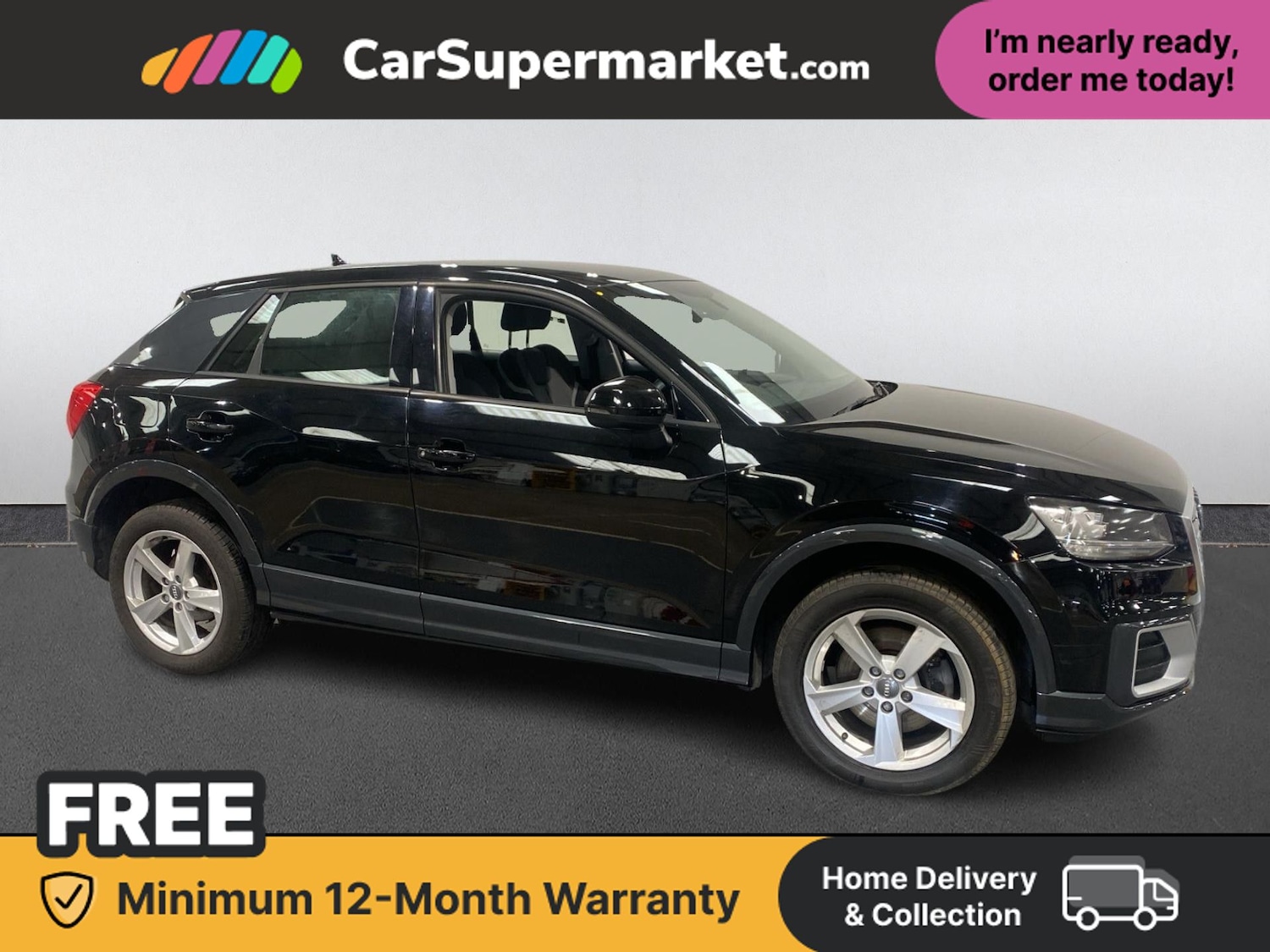 This Audi Q2 Sport in black features a specification including a toolkit and jack with Manhattan grey metallic blade. Highlights include Apple CarPlay/Android Auto, Bluetooth, satellite navigation, digital radio, Audi Music Interface, and parking sensors.