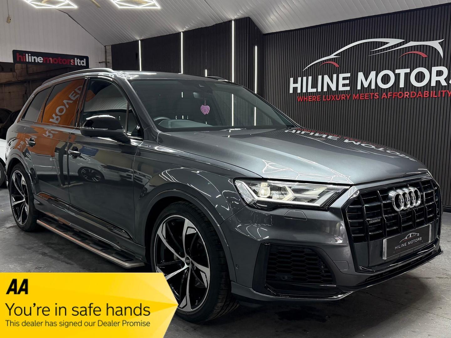1 Previous Owner, At Hiline Motors, we specialize in offering a carefully curated selection of luxury vehicles, all sourced directly from authorized main dealerships. Unless otherwise specified in the listing, our vehicles are not part exchanges, ensuring premium quality and provenance.This Audi Q7 TDI V6 Black Edition from 2023 boasts a single owner and a full service history, ensuring excellent provenance. As a Euro 6 compliant model, it features a powerful 3.0L Diesel engine paired with Four Wheel Drive for confident handling. This seven seat SUV offers a generous boot space, making it practical for families and everyday use. Notable features include Deluxe FourZone Automatic Climate Control for personalised comfort, Audi Parking System Plus with front and rear sensors, and a Rear View Camera to aid manoeuvring. LED Headlights provide excellent visibility, while the Bluetooth Interface allows for seamless connectivity.The performance of this Q7 is truly impressive, achieving 062mph in just 6.1 seconds, a highlight that sets it apart from many other vehicles in its class. Its low insurance group rating further enhances its appeal as a cost effective choice. With a substantial towing weight of 3500 kg, it is well equipped for towing caravans or trailers. The vehicle comes with a 12 month MOT for your peace of mind, and a clear vehicle history check confirms its sound condition.Each car we offer comes with outstanding specifications and a comprehensive service history, giving you complete peace of mind. Plus, we can provide up to 2 years warranty (available for an additional cost), ensuring your investment is protected.Before delivery/collection, every vehicle undergoes a fresh 12month MOT and, if required, a service, ensuring its in optimal condition. We also offer 12 months of AA Breakdown Cover for just £10, providing you with added security on the road.At Hiline Motors, were committed to delivering / selling exceptional cars with exceptional service.