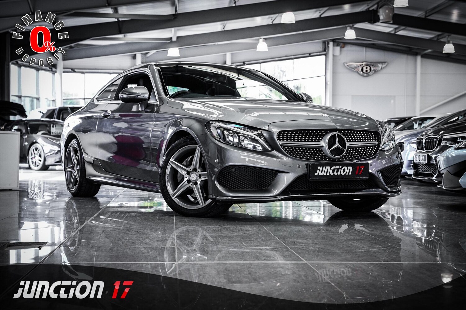 Insurance Group 33, *CLICK BUY COLLECT* FINANCE AVAILABLE! HPI CLEAR! Junction 17 Cars now have to offer a stunning MercedesBenz C Class 2.1 C220d AMG Line (Premium Plus) GTronic+ Euro 6 (s/s) 2dr.. 5 x Service Records Present.. Finished in Selenite Grey Metallic.. Desirable Specification.. Panoramic Roof.. Burmester Audio System.. Rear View Camera.. Navigation System.. Keyless Start.. 18'' AMG Alloys.. DAB Radio.. Cruise Control.. and more.*ANY THIRD PARTY VEHICLE INSPECTIONS ARE WELCOME* *WE WILL BEAT ANY CAR VALUATION SITE FOR YOUR PART EXCHANGE* Junction 17 Cars (Runner Up at the Motor Trader Independent Dealer Awards 2019 nominated for Car Supermarket of the Year Award) is a unique family run business with over £7 millions worth of stock currently split over our purposebuilt showroom in Yaxley, Peterborough and our new showrooms in Grantham and Rugby. Our vehicles can also be reserved with a £99 refundable holding deposit to ensure that they are professionally prepared/valeted for your viewing pleasure. Competitive HP and PCP packages are available with decision/approval available within 15 minutes. We also offer comprehensive warranties over a variety of different terms as well as Williams Ceramic Coating, Flexfuel Engine Carbon Cleaning and more. **NATIONWIDE DELIVERY AVAILABLE** Payment : maximum £500 card payment balance by bank transfer