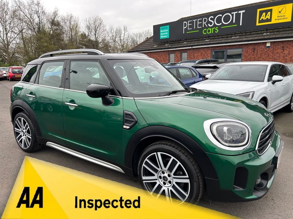 WidnesInsurance Group 18, 0 Previous Owners, Stunning, high specification Mini Countryman with Satellite navigation, Full leather interior, Heated front seats, Apple carplay, Parking sensors and much more. One owner from new. Cared for and maintained to a very high standard with Mini main agent service history. This practical and economical Mini Countryman has been independently inspected by the AA for your added peace of mind. We have uploaded a full Hd walkaround video to show the quality both inside and out of this Mini Countryman Exclusive. Visit www.peterscottcars.co.uk, to reserve this car and apply for finance. Peter Scott Cars is an Award Winning family run dealership with over 30 years experience in the sourcing and supply of high quality vehicles..12V Socket in Centre Console, 19in Alloy Wheels MINI Yours British Spoke, 3 Point Seatbelts on all Seats, 4 Lashing Eyes in Luggage Compartment, 6 Speakers System, Airbags, Alarm System, Anthracite Headlining, AntiLock Braking System ABS, Auto Drive Away Locking, Bluetooth for Compatible Mobile Phone with Audio Streaming, British Racing Green IV, Chrome Highlights, Colour Line Carbon Black, Cruise Control with Brake Function, Cupholders, Daytime Driving Lights, DeadLocking Function, Door Sill Strips, Door Storage Compartments, Dynamic Brake Lights, Dynamic Stability Control DSC, Electric Windows, ElectroMechanical Steering with Speed Dependant Steering Assistance, Electronic Handbrake, Electronic Vehicle Immobiliser, English Handbook, Exhaust Tailpipe Left with Chrome Finisher, Extended Interior Lighting Pack, FM Tuner and DAB Digital Radio, Folding Rear Seats 402040, Front Fog Lights LED, Fuel Filler Cap in Body Colour, Glove Compartment, Heated Rear Window, Heated Windscreen Washer Jets, Instrument Cluster, Interior Trim MINI Yours Shaded Silver, Leather Gearshift Lever and Handbrake Gaiters, LED Headlights, LED Reading Lights Vanity Mirror Lights Front Footwell Lights Spotlights on Front Seats, Locking Wheel Bolts, Mechanical Seat Adjustment, MINI ECall, MINI TeleServices, MINI Yours Exterior Badging C Pillar Driver and Passenger Side, MINI Yours Floor Mats, MINI Yours Lounge Leather Carbon Black, Model Logo, Model Logo on Tailgate, Multifunction Controls for Steering Wheel, Nappa Leather Steering Wheel with MINI Yours Badge, OnBoard Computer, Passenger Seat Height Adjustment, Performance Control, Premium Pack, Radiator Grille, Rain Sensor and Automatic Headlight Activation, Rear Fog Light, Rear ISOFIX, Rear Window Wiper, Roof and Mirror Caps Black, Roof and Mirror Caps Silver, Roof Rails Silver, Side Scuttle Panels with Integrated Indicators, Split Rear Doors, Sport Seats, StartStop Toggle including Keyless Go, Steering Column Height and Length Adjustment, Sun Visor with Vanity Mirrors, SunHeat Protection Glass, Tool Kit, TwoTone Horn, Tyre Pressure Monitoring System, White Direction Indicators Lights