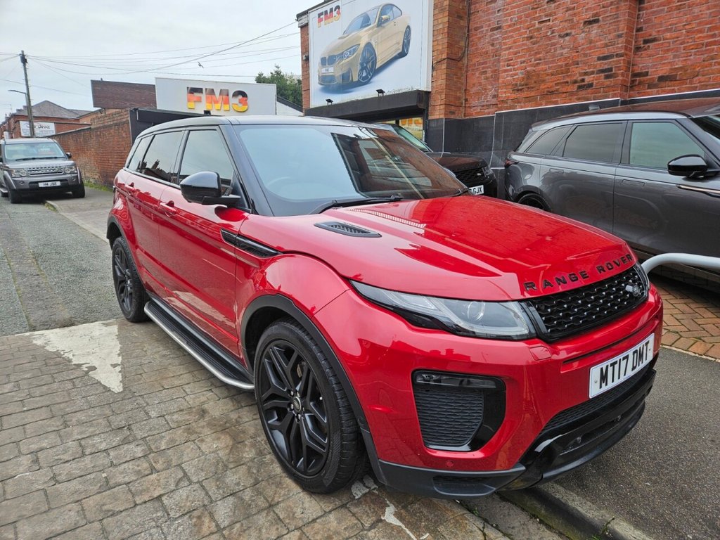 StockportWE AT FM3 cars would like to offer you a fantastic Range Rover EVOQUE 2.0 TD4 4WD HSE Dynamic, SUV, 5 Door, Diesel Auto, Euro 6 (s/s) (180 ps), Finished in Dark RED with Full Black Leather Interior, Heated Front Seats, Reverse Camera, Panoramic Roof, 20 inch Alloys, Front and Rear Parking system, Electric Folding Mirrors, Service History, Sat Nav, Bluetooth, 12 Month Mot, 2 Keys, Great looking car derive excellent. Uk Main Land Delivery and Finance Options Available, Reserve this car today with £199 deposit. All of our cars come provided with a service and MOT. HPI reports are available for all vehicles. Warranties available, subject to suit each individual vehicle. We partner with a wide variety of finance companies, decisions can be made within 60 seconds. Drive your dream car away within 1hour. 5 day drive away insurance available at an additional cost. All part exchanges welcome. Tel; 0161 487 1007. We do take great care in describing the vehicle, its features and history, but errors can be made. Please feel free to ask the sales staff for any particular feature or detail you are not sure about before purchase, as this can not be rectified after purchase. .1212 Way Electric Memory Seats, 20in Alloy Wheels 5 Split Spoke Style 504 Sparkle Silver Finish, ABS Anti Lock Braking System, Airbags Driver Knee, Airbags Front Driver and Front Passenger, AutoDimming Interior Mirror, Autonomous Emergency Braking, Blind Spot Monitor and Closing Vehicle Sensing with Reverse Traffic Detection, Bluetooth Telephone Connectivity with Streamed Audio, Body Coloured Door Handles, Body Coloured Lower Door Claddings, Body Coloured Roof with Matching Spoiler, Bonnet and Tailgate Badging Atlas, CDDVD Player, Carpet Mats with Edging, Climate Control Automatic with Air Filtration and Automatic Recirculation, Climate Control Rear Vents, Customer Configurable Interior Mood Lighting, DAB Digital Audio Broadcast, DSC Dynamic Stability Control, Door Mirrors Narvik Black, Dynamic Body Styling, EBA Emergency Brake Assist, EBD Electronic BrakeForce Distribution, EPAS Electronic Power Assisted Steering, Engine Badge HSE, Evoque Badge in Red, Exhaust Finishers Dynamic Bright, Exterior Mirrors Electric AdjustmentHeatedPower FoldPuddle Lamps with Projected Evoque GraphicDirection IndicatorsMemory Function with Auto Dipping in Reverse Gear, Fender Vent Blade Narvik Black, Fixed Panoramic Roof Including Powered Blind, Fog Light Finisher Narvik Black, Front Fog Lights, Front and Rear Bumpers Body Coloured, Front and Rear Lower Bumpers Anthracite, Front and Rear Parking Aid, Gesture Tailgate, Grille Bars Narvik Black, Grille Outer Surround Narvik Black, Grille Surround Corris Grey, HDC Hill Descent Control, HSA Hill Start Assist, Headlight Power Wash, Headlights Automatic High Beam Assist, Headlights Xenon with Automatic Levelling and LED Signature Lights, Heated Front Seats, Illuminated Range Rover Treadplates, InControl Apps, InControl Pro Services for Warranty Period, InControl Protect, InControl Remote Premium for Warranty Period, InControl Touch Pro Level 3, InControl Touch Pro Navigation, Keyless Entry, LUX Pack, Lane Keeping Assist with Lane Departure WarningAutonomous Emergency Braking and Driver Condition Monitor, Locking Wheel Nuts, Meridian Surround Sound System 825W, Narvik Black Bonnet Louvres, Paddle Shift and Sport Mode, Park Assist ParallelParking Exit and Perpendicular Park, Parking Sensors Body Coloured Outer Black Inner, Perforated Windsor Leather Steering Wheel with Audio Controls and Cruise Control, RSC Roll Stability Control, Rain Sensing Windscreen