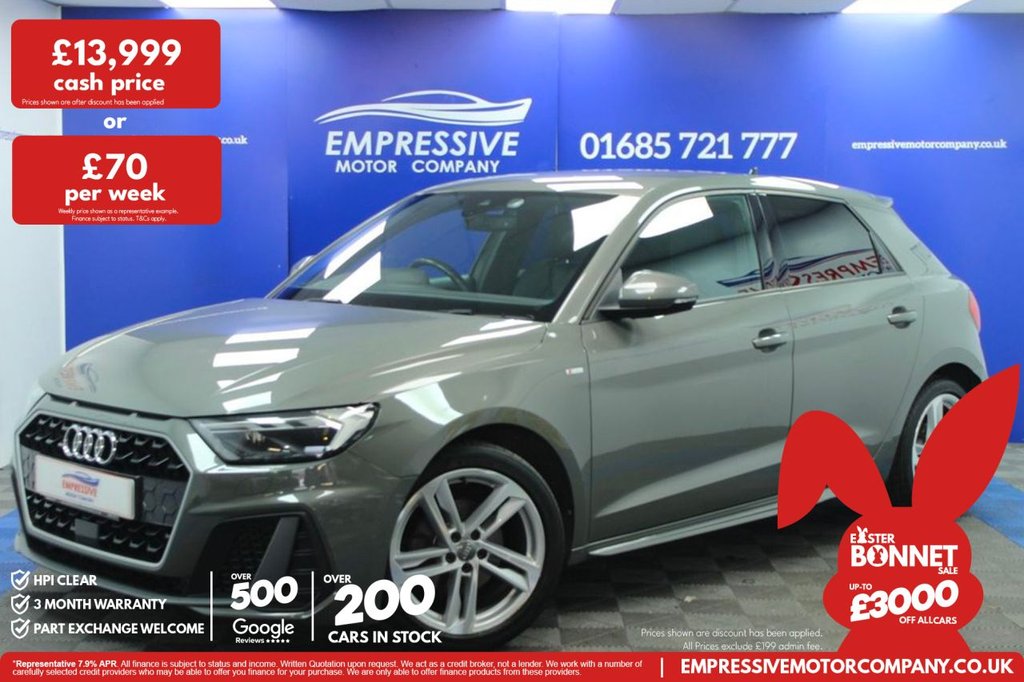 Merthyr TydfilInsurance Group 20, ****AWESOME AUDI**** Just in! This Stunning 2019 AUDI A1 1.0 TFSI 30 S line Sportback 5dr Petrol Manual Euro 6 (s/s) (116 ps) Finished In Grey! 55,467 Miles 1.0L Petrol 6 Speed Manual SLine 72MPG 17" Silver Wheels Heated Mirrors Parking Sensors Half Leather SLine Seats USB and USBC Charging Ports Efficiency Mode Auto Mode Dynamic Mode Individual Mode Traction Control System Stop Start Climate Control System Bluetooth with Apple CarPlay Digital Dash Automatic LED Headlights Voice Assistant Automatic Window Wipers Cruise Control Speed Limiter .1 x USBC and 1 x USBA Charging Points, 10.25in Digital Instrument Cluster, 17in Alloy Wheels 5Twin Spoke Design Partly Polished, 6 Passive Loud Speakers, ABS AntiLock Braking System, Air Conditioning, Aluminium Trim for Control Switches Air Vents and Digital Instrument Cluster, Anti Theft Locking Wheel Bolts, AntiTheft Alarm, Audi Connect Emergency and Service with ECall, Audi Drive Select, Audi PreSense Front with Pedestrian and Cyclist Recognition, Audi Smartphone Interface, Audi Warranty 2 Years 60000 Miles, AutoDimming RearView Mirror, Bluetooth Interface, Body Coloured Side Sill, Centre Console with Two Cup Holders and 12V Socket, Cloth Headlining in Black, Cruise Control, DAB Digital Radio, Door Mirrors Body Coloured, Door Mirrors Electrically Adjustable and Heated with Integrated LED Side Indicators, Door Sill Trims Aluminium with S Line Logo, Driver Front Passenger Front Side and Head Airbag System, Driver and Front Passenger Seats with Manual HeightForwards and Backwards Adjustment, Electric Windows Front and Rear, Electromechanical Power Steering, ESC Electronic Stabilisation Control inc ABS EBD ASR EDL, First Aid Kit and Warning Triangle, Front and Rear Floor Mats, Front Passenger Airbag Deactivation Switch, Front Spoiler Clip Rear Diffuser Clip in Matt Platinum Grey, Gear Knob in Leather with Aluminium Trim, Head Restraints Rear, Heat Insulating Glass Windscreen and Side Windows, Heated Rear Windscreen, Hill Hold Assist, Inlays in Polygon Structure Silver Grey Diamond Paint Accent Areas in Structure Grey Quartz Paint, Interior Lighting Front and Rear Reading Lights and Luggage Compartment Light, ISOFIX Child Seat Mounting for Front Passenger and Rear Outer Seats, Lane Departure Warning, Leatherette Handbrake Grip, LED Headlights with LED Rear Lights and Dynamic Rear Indicators, LED Interior Light Pack, Light and Rain Sensors, Manually Adjustable Lumbar Support in Front Seats, MMI Radio Plus with 8.8 MMI Colour Display Screen and MMI Touch, Pedals in Stainless Steel, Radiator Grille Matt Titanium Black, Radiator Protective Grille Frame in Matt Aluminium Silver, Rear Fog Lights, Rear Parking Sensors, Remote Central Locking with 2 Fold Away Keys, S Line Badges on the Front Wings, S Line Exterior Bumpers, S Line Roof Spoiler, SD Card Reader, Seat Belt Height Adjustment for Front Seats, Seat Belt Monitoring, Side Air Inlet Frames in Titanium Black, Speed Limiter, Split Folding Rear Seat, Sport Susp
