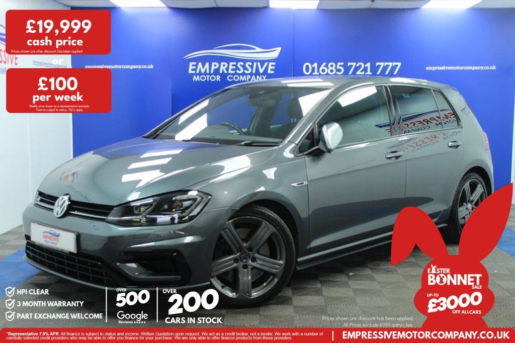 Merthyr TydfilInsurance Group 37, ****GREAT GOLF**** Just in! This Stunning 2019 VOLKSWAGEN GOLF 2.0 TSI R Hatchback 5dr Petrol DSG 4Motion Euro 6 (s/s) (300 ps) Finished In Grey! 67,386 Miles 2.0L Petrol Automatic Paddle Shifters RLine Seats Ambient Lighting 18" Grey Wheels Electric Powered Heated Folding Mirrors Reversing Camera Parking Sensors Electric Handbrake Auto Hold Traction Control System Stop Start Eco Mode Race Mode Normal Mode Individual Mode Heated Seats Automatic Dual Zone Climate Control System Bluetooth with Apple CarPlay Automatic LED Headlights Digital Dash Voice Assistant Adaptive Cruise Control Speed Limiter .12V Socket Luggage Compartment, 18in Alloy Wheels Cadiz, ABS AntiLock Braking System with HBA Hydraulic Brake Assist, Active Info Display, Adaptive Cruise Control, Airbags, Alarm with Interior Protection, Ambient Lighting, Ambient Lighting Pack, AntiTramp Function, Automatic ComingLeaving Home Lighting Function, Automatic PostCollision Braking System, Bag Hooks in the Luggage Compartment x2, Black Rooflining, Body Coloured Bumpers, Body Coloured Door Handles, Brake Calipers Black, Brake Pad Wear Indicator, CarNet App Connect, CarNet Security and Service including eCall, Carbon Touch Decorative Inserts in Dash and Door Panels, Carpet Mats Front and Rear, Child Security Locks in the Rear Doors, Chrome Plated Air Vent Surrounds, Chrome Plated Electric Mirror Adjustment Switch Surround, Chrome Plated Electric Window Button Surrounds, Chrome Trimmed Front Air Intake Surround, ChromePlated Light Switch Surround, Climate Control, Composition Media System, Convenience Pack, Cover for Storage Compartment in Centre Console, Cup Holders Front x2, Discover Navigation TouchScreen NavigationRadio System with CarNet Guide and Inform, Driver Alert System, Driver Personalisation Profile, Drivers and Passengers Safety Optimised Head Restraints, Driving Mode Selection, Dusk Sensor Automatic Driving Lights, Dust and Pollen Filter, Electric Windows Front and Rear, Electronic Engine Immobiliser, Electronic Parking Brake with Auto Hold Function, ESC Electronic Stability Control including EDL Electronic Differential Lock and ASR Traction Control with Deactivation via Infotainment System, Extended Sill Strips Flared, Front Assist, Front Centre Armrest with Storage Compartment and Two Rear Air Vents, Front Footwell Illumination, Front Seat Back Storage Pockets, Front Sport Seats with Height and Lumbar Adjustment, Front Sports Seats with Embroidered R Logo, Galvanised Body, Glovebox Cooled, Grab Handles Front x2 Rear x2 with Coat Hooks, Headlight Washers, Heated Front Seats, Heated Rear Windscreen, Heated Windscreen Washer Jets, HeightAdjustable Front ThreePoint Seat Belts with Tensioners, High Level 3rd Brake Light Incorporating LED Technology, Illuminated Door Sill Protectors, Instrument Cluster with R Specific Design, Instrument Lighting White Adjustable Panel Illumination, Interior Light Delay, ISOFIX Child Seat Preparation for 2 Rear Seats, Keyless Entry, LED Headlights with Dynamic Curve Light, LED Headlights with Dynamic Light Assis