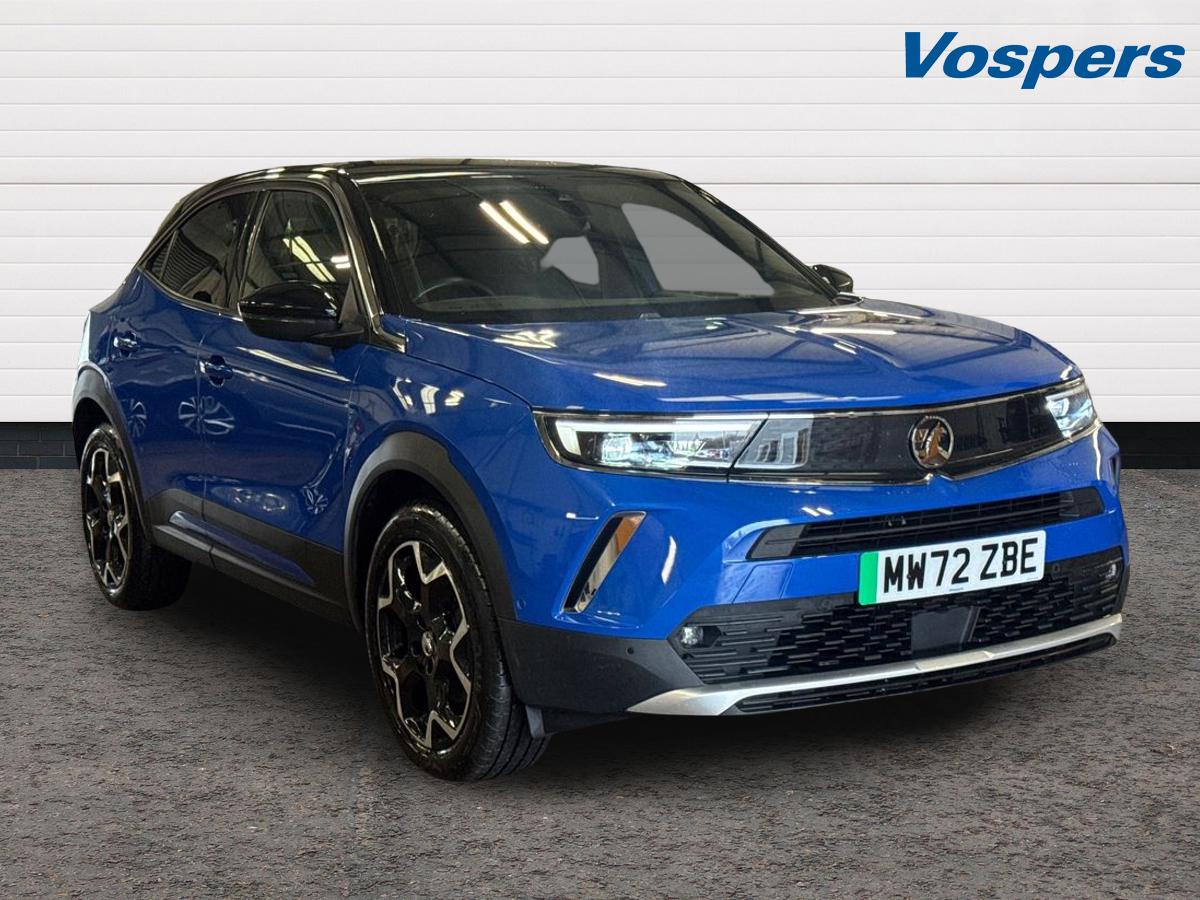 0 Previous Owners, . Vauxhall Mokka 100kW Ultimate 50kWh 5dr Auto MW72 ZBE Reserve Online for 99 Minimum 6Month Warranty Year: 2022 (72) Mileage: 22,671 miles Fuel: Electric Transmission: Automatic Colour: Blue Overview This 2022 Vauxhall Mokka Ultimate Electric is a stylish and efficient SUV offering zeroemission driving, modern technology, and everyday practicality. With 22,671 miles, this wellmaintained example is perfect for ecoconscious drivers seeking comfort and performance. Powered by a 50kWh electric battery producing 100kW, the Mokka delivers smooth, instant acceleration and a quiet driving experience. The automatic transmission ensures effortless driving, ideal for city commuting and longer journeys alike, while keeping running costs low. The Ultimate trim provides premium features including a highquality interior, advanced infotainment, and driver assistance systems. Its fivedoor layout ensures easy access for passengers, and the practical boot space makes it ideal for shopping, luggage, or daily use. Finished in striking blue, this Mokka combines bold SUV styling with electric efficiency, comfort, and versatilityperfect for modern driving needs. Key Features & Highlights 50kWh electric battery, 100kW output Automatic transmission Ultimate topspec trim 22,671 miles Premium interior with infotainment Advanced driver assistance features Smooth, quiet, zeroemission drive Practical fivedoor SUV layout Stylish blue exterior Low running costs Why Choose This Mokka? Efficient, ecofriendly electric SUV Highspec Ultimate trim Smooth and effortless automatic drive Practical, stylish, and modern Excellent value compared to new Buy With Confidence Minimum 6Month Warranty included Fully inspected with multipoint check Finance & partexchange available HPI Clear Reserve Online Today for Just 99.12'' digital instrument cluster, Advanced Park Assist, Automatic adaptive cruise control, Digital instrumentation with digital speedometer, rev counter, fuel and water temperature gauge, Drive mode selector, Driver drowsiness alert system, Driver information display with multi function trip computer, audio info, digital clock and outside air temperature with ice warning function, Engine start/stop button, EV information display, Front and rear parking distance sensors, Front camera system, Lane keep assist system (LAS) with Lane departure warning system (LDWS), Lane positioning assist, Lights on audible warning, Panoramic rear