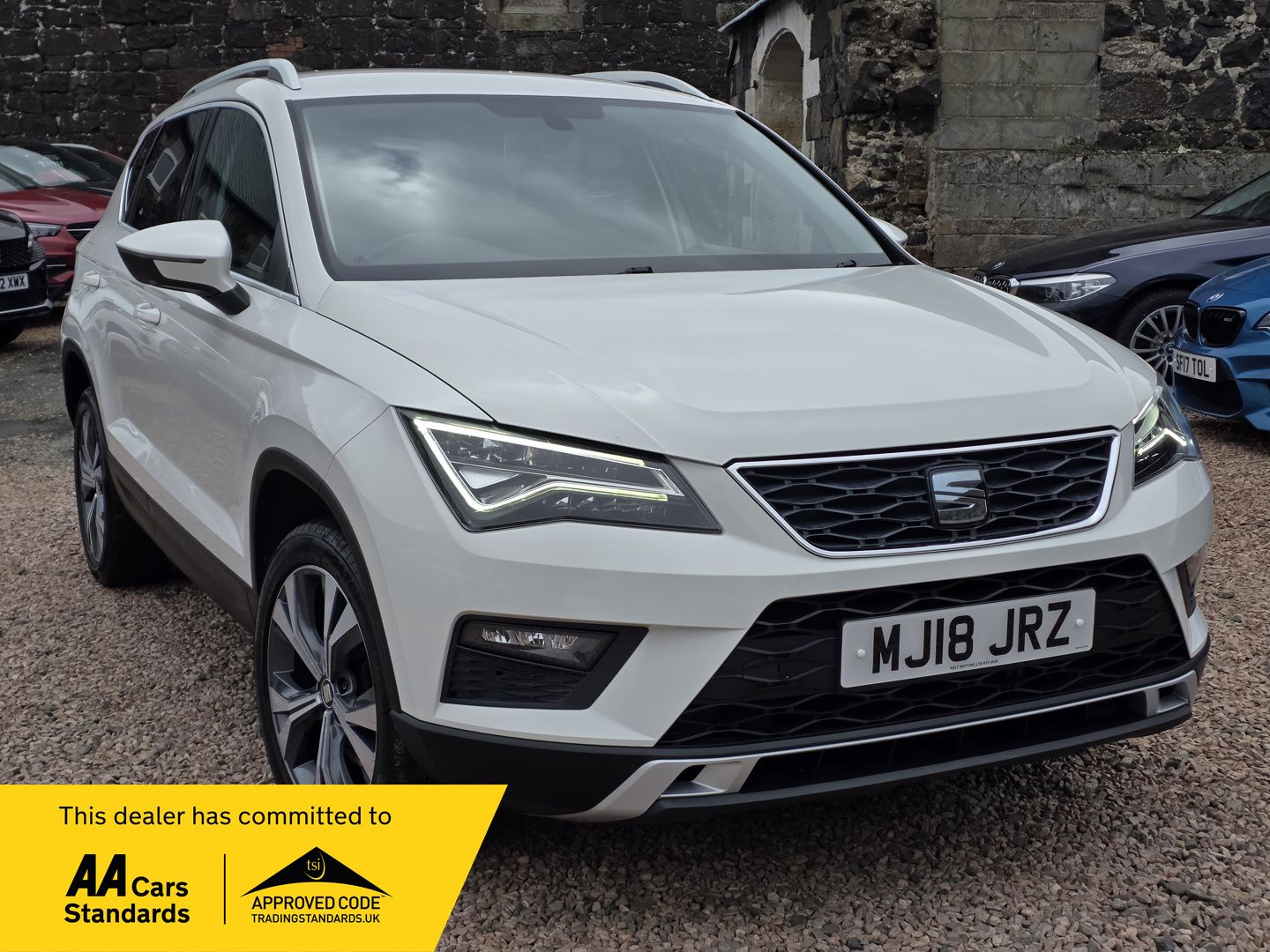 Seat Ateca SUV with Apple CarPlay 2018 SEAT ATECA 1.4 ECOTSI SE TECHNOLOGY £9450 84,300 miles Bila White 8 stamp service history Apple CarPlay and Android Auto Only 2 owners from new LEZ compliant LED headlights, navigation system, rear camera, cruise control, rear parking sensors, power fold mirrors, roof rails, drive mode selection, dual zone climate control AA Cars Motor Dealer Free 3 month warranty included Free 12 months AA Breakdown Cover Finance options