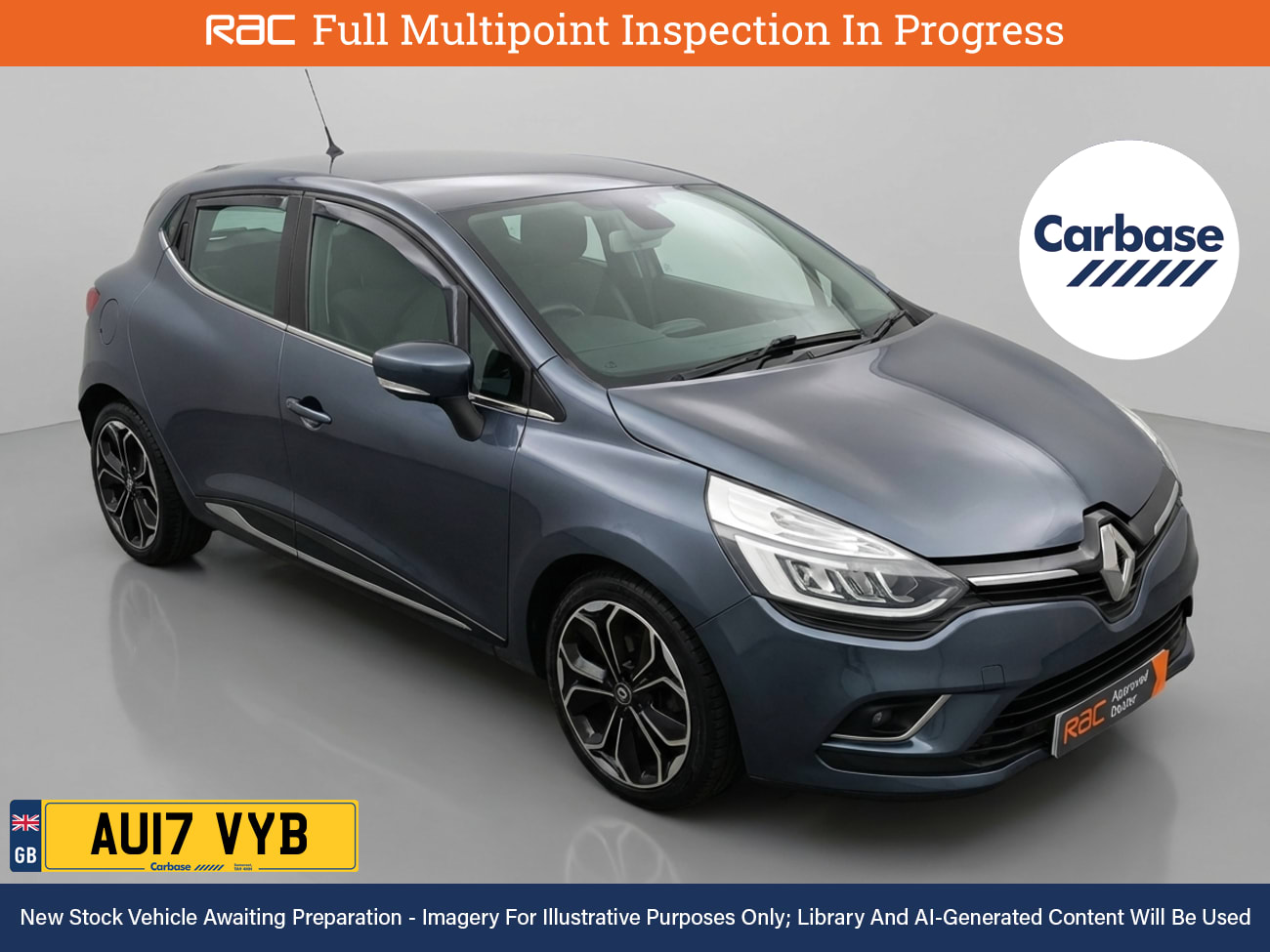 RAC MultiPoint Inspection at 43k Miles And Service History (6 Stamps Last At 32k) Discover The Efficiency And Comfort Of The Renault Clio, Immerse Yourself In Its Features InStore And Take It For A Test Drive To Experience Your Inner Va Va Voom! Drive In Style And Comfort With This Vehicles £595 Worth Of Factory Fitted Extras Including, Height Adjustable Passenger Seat, Luxurious Cloth And Leather Upholstery And Finished In Titanium Metallic Paint Standout Key Features Include Gps Satellite Navigation System, Boasting Intuitive Sat Nav Functionality For Seamless Journeys. As You Step Inside You Will Find A Variety Of Technologies, Including Rear Radar Type Parking Sensors, Cruise Control, Rain Sensing Windscreen Wipers. Keep Everyone Onboard Entertained Thanks To Features Such As Mp3 iPhone iPod USB & Aux Music Ports, Bluetooth Wireless SmartPhone Connectivity, DAB Digital Radio For A Myriad Of Stations To Suit Your Mood. Relax In The Ultimate Comfort Thanks To Keyless Entry, Keyless Start, Air Conditioning, Electrically Foldable Door Mirrors, Tinted Glass, Isofix, Front Electric Windows, Leather Covered Multifunction Steering Wheel. On The Exterior Youll Be Sure To Notice The 17 Inch Alloy Wheels. Also Fitted With Front Fog Lights, Engine Start/Stop Fuel Saving Technology, Electric Hill Holder, Tyre Pressure Monitoring System., Date Of First Registration March 2017. Drive Into A Low Emissions Zone With This Euro 6, ULEZ & CAZ Compliant Car Were an RAC Approved...