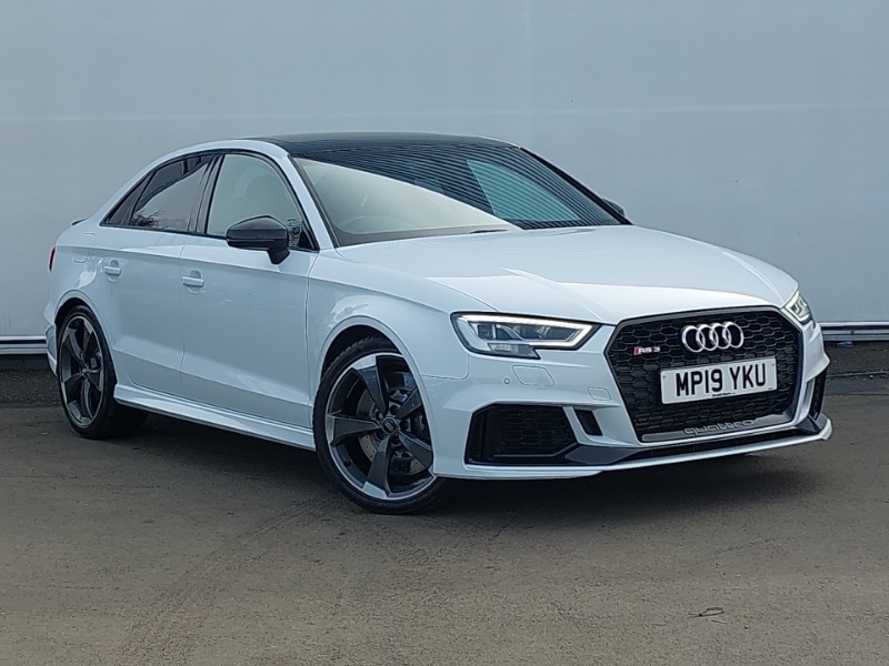 RutherglenInsurance Group 46, 19" 5 arm rotor style audi sport design alloy wheels in glossy anthracite black look with diamond cut finish, Electric sunroof, MMI navigation plus with MMI touch, MMI radio plus with 7" colour MMI screen and MMI controller, Privacy glass dark tinted rear and rear side windows from Bpillar backwards, Voice control system, Automatic start/stop system, Remote control central locking, Android Auto, Apple CarPlay, RS sports suspension, Black Styling pack RS3, Hill hold assist, Audi connect